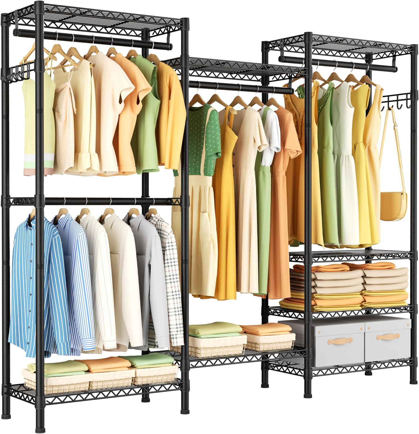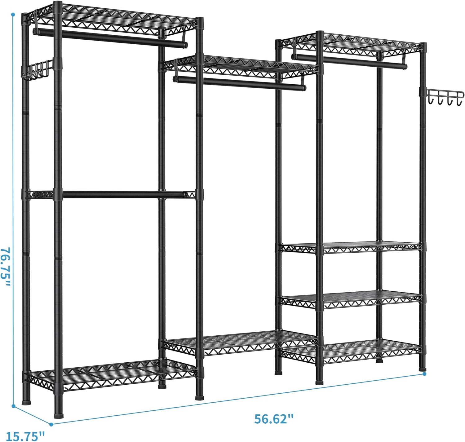 Heavy Duty Garment Rack Large Clothes Rack,Freestanding Closet Portable Clothing Rack with 8 Adjustable Wire Shelves and 4 Hang Rods,Metal Closet Storage Wardrobe Organizer System,Max Load 800lbs