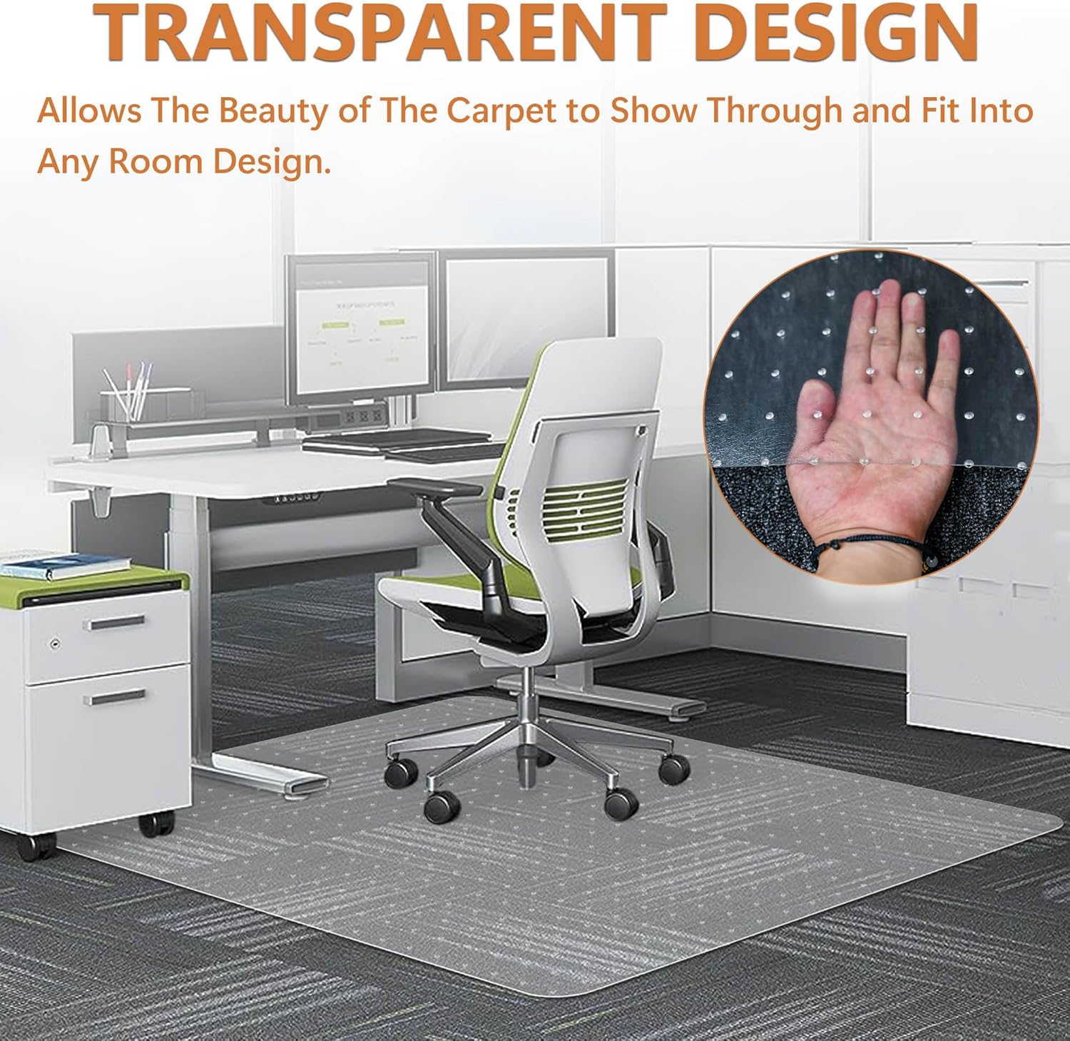 • 【Ultimate Grip & Carpet Protection】 Our Chair mat for Carpet Features exclusive grip studs on the underside that firmly anchor into your carpet pile. This innovative design prevents unwanted shifting and curling, providing a stable base that effectively shields your expensive carpet from unsightly roller chair indentations, wheel marks, and daily wear and tear