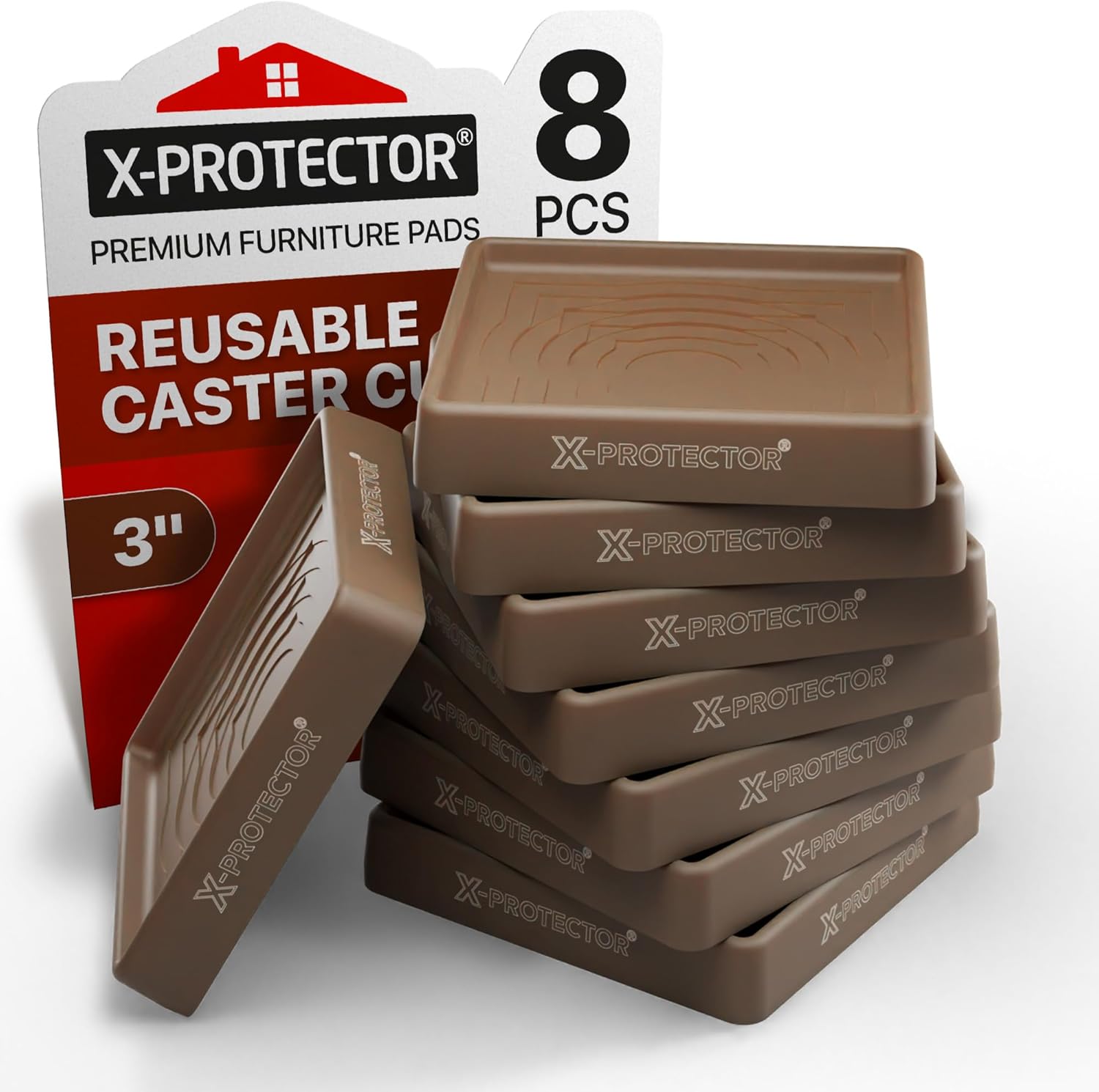 Furniture Cups X-PROTECTOR – 3" Caster Cups 8 PCS – Premium Furniture Coasters – Ideal Bed Stoppers – Non Skid Furniture Pads with a Perfect Design – Rubber Furniture Pads - Protect Any Flooring!