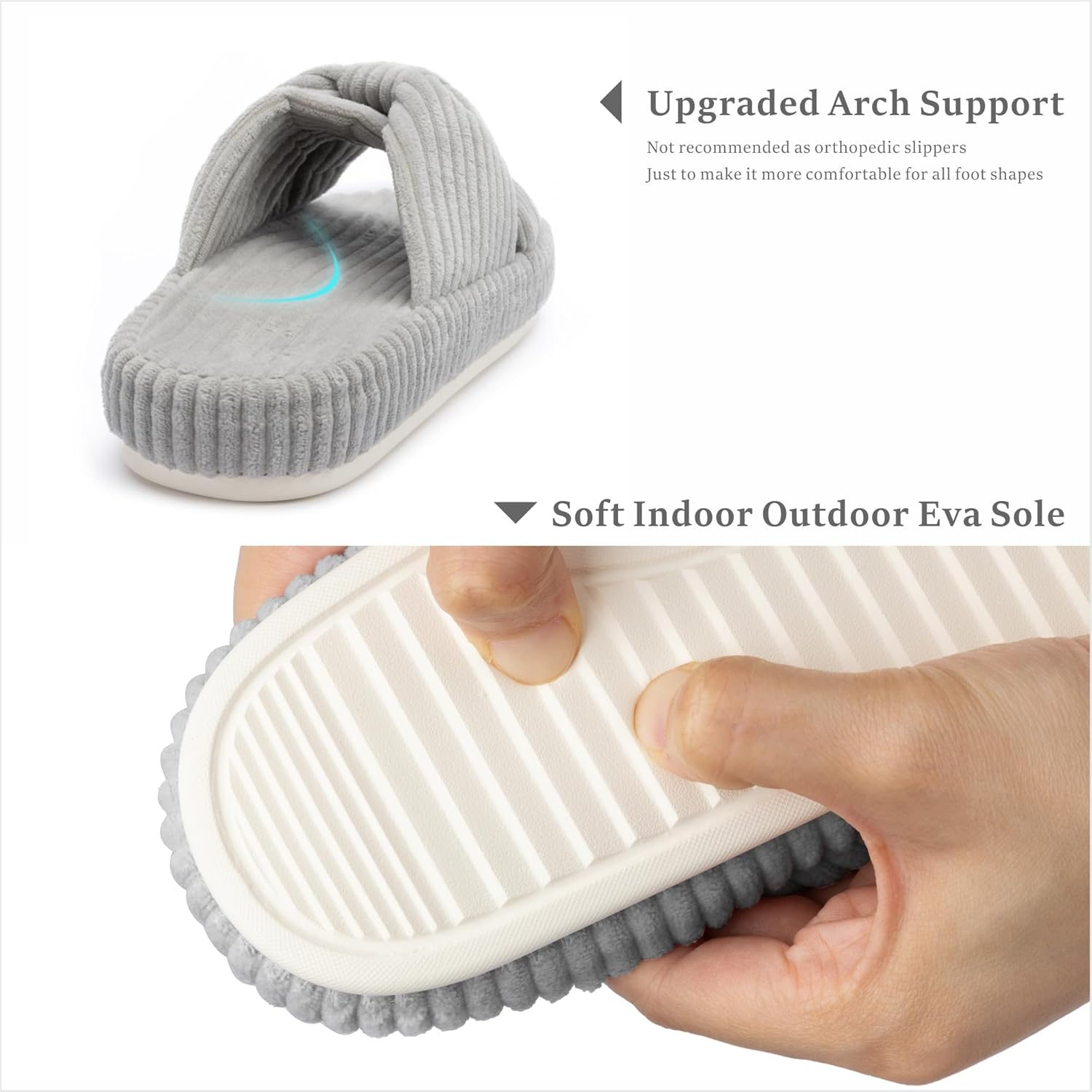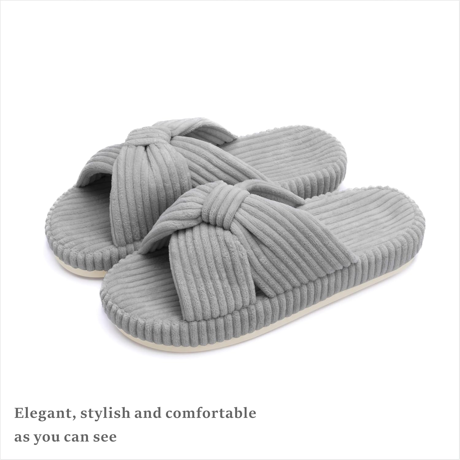 Chantomoo Slippers for Women Memory Foam House Bedroom Corduroy Bow Crossbands Slide Slipper Shoes Comfy Trendy Gift Slippers