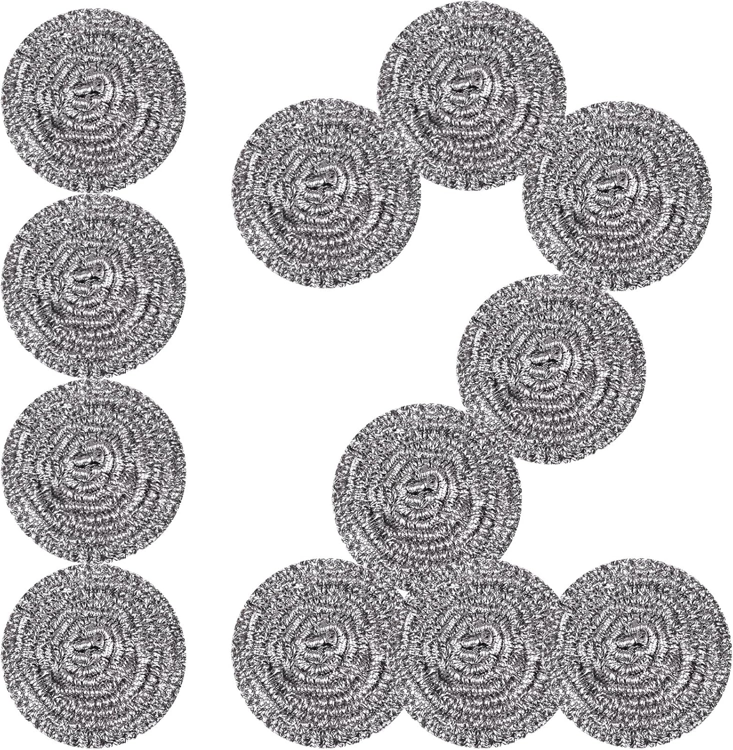 • Product Size: 6-8-10Pack steel wool scrubbers included, individually wrapped to keep clean and avoid mutual entanglement between these scouring pads. The diameter of each one is approx 2.76 inches, and the weight is about 0.70 ounces.