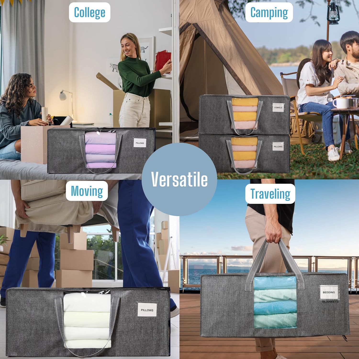 • Instant Identification – Featuring a transparent (window) design alongside a handy tag pocket, this storage bag simplifies identifying the contents within, ensuring swift access to your stored items, be it college dorm essentials, camping gear, or various household items. Ideal for moving, organizing, and storage tasks, this versatile bag guarantees that no matter where you store your belongings, they remain neatly organized and easily identifiable.