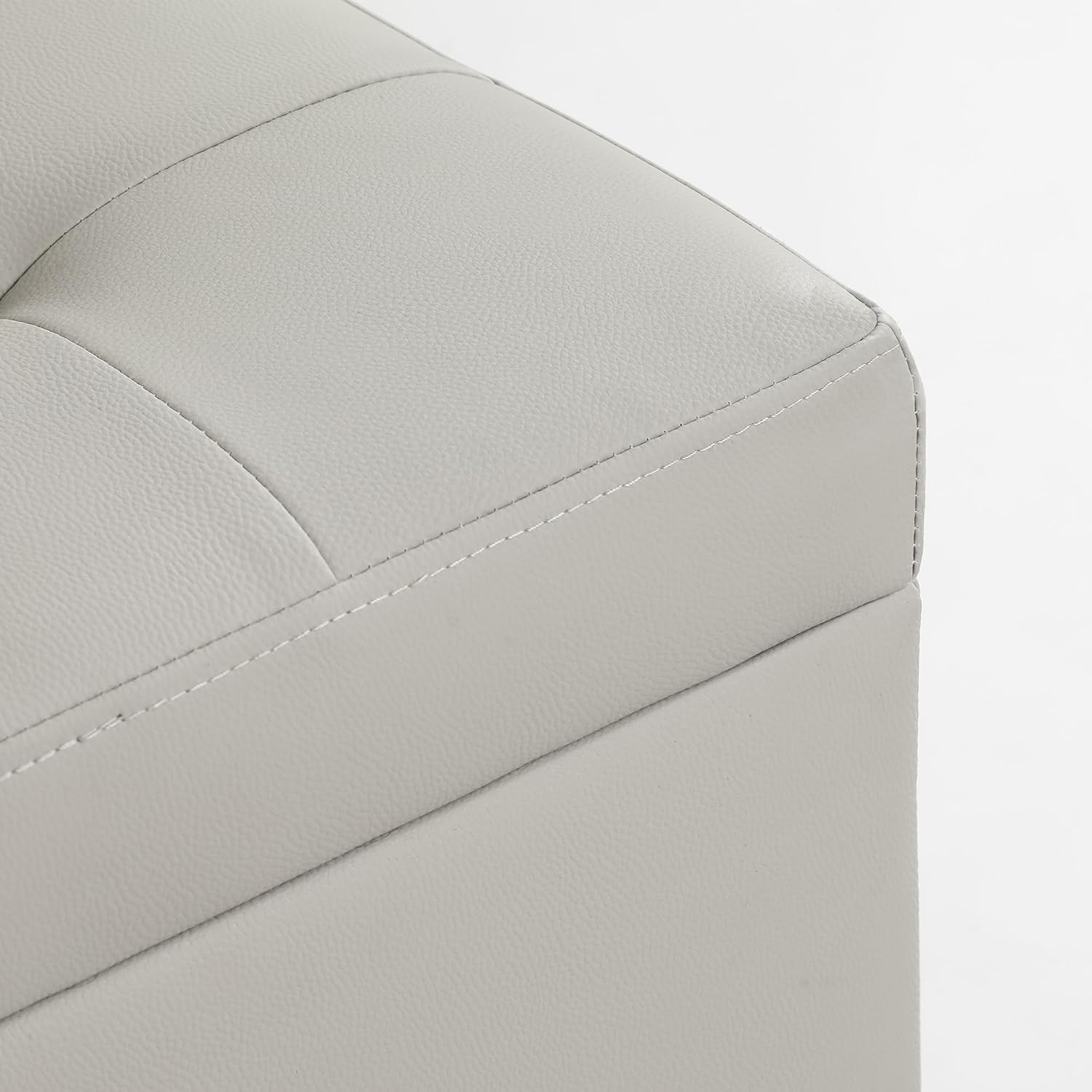 • Morden and Multi-functional Hidden Storage Piece - Featuring with simple elephant grey faux leather and cherry finish legs, ideal for bringing a chic and stylish touch to any room, great fit for your home decor, also works very well as footstool to ease your tired feet, small storage chest and additional seating for your guest.