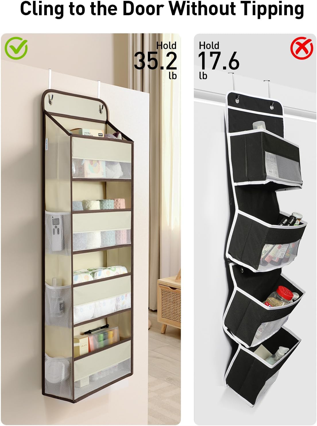 Yecaye Hanging Over the Door Organizer 1 Pack, 35.2lbs Load Toy Stuffed Animal Storage, Swing-proof Bathroom Organizers and Storage for Nursery Newborn Baby Essential Stuff Beige