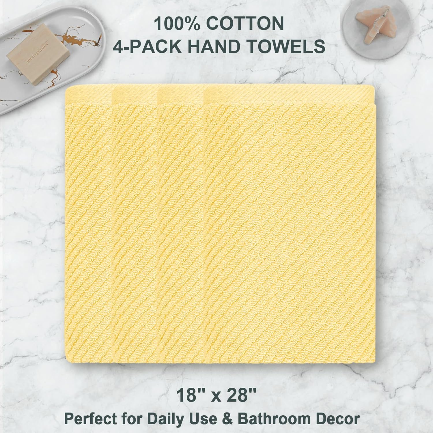 VOOVA & MOVAS Yellow Hand Towels for Bathroom, 4 Pack Large 18" x 28" - 100% Cotton | Lightweight | Thick | Quick Dry | Soft | Absorbent, Bath Hand Towels for Showering, Bathroom Essentials
