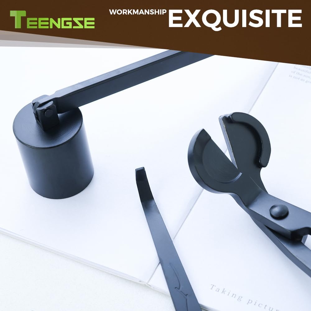 3 in 1 Candle Accessory Set, Candle Wick Trimmer, Candle Wick Snuffer, Candle Wick Dipper Beautiful Box for Candle Lover (Black)