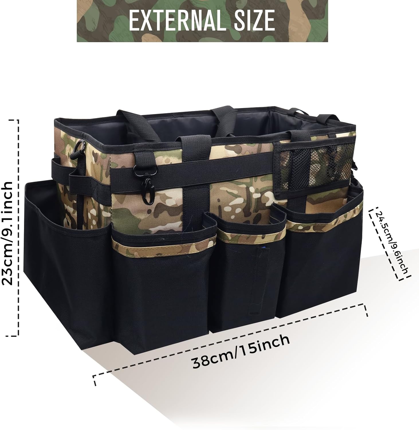 Wearable Cleaning Caddy Organizer with Handle & Shoulder Straps for Housekeepers, Under Sink & Car Cleaning Tool Organizer Bag with 4 Foldable Dividers (Camouflage)