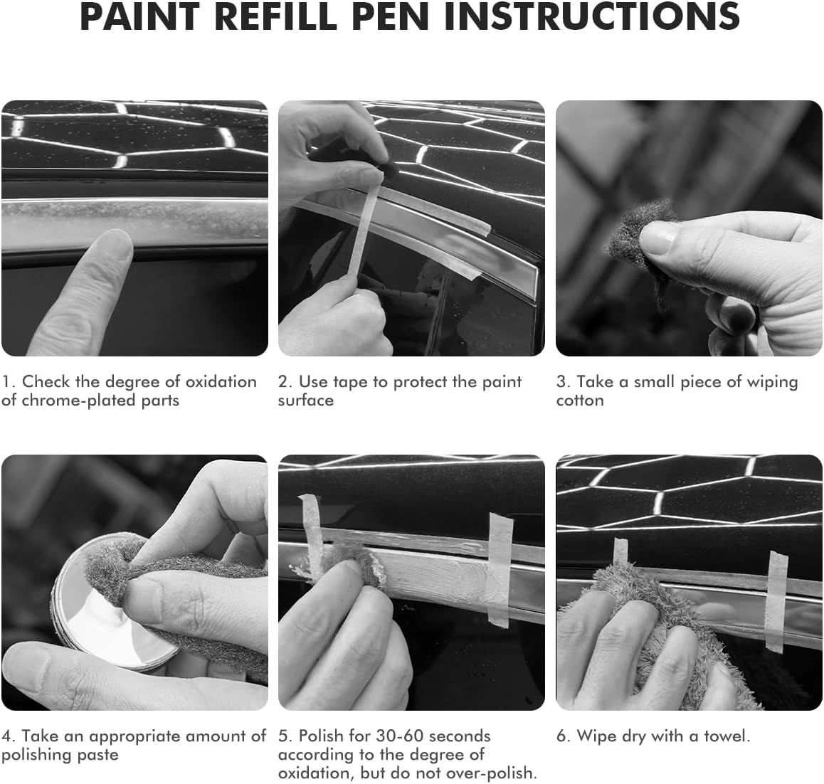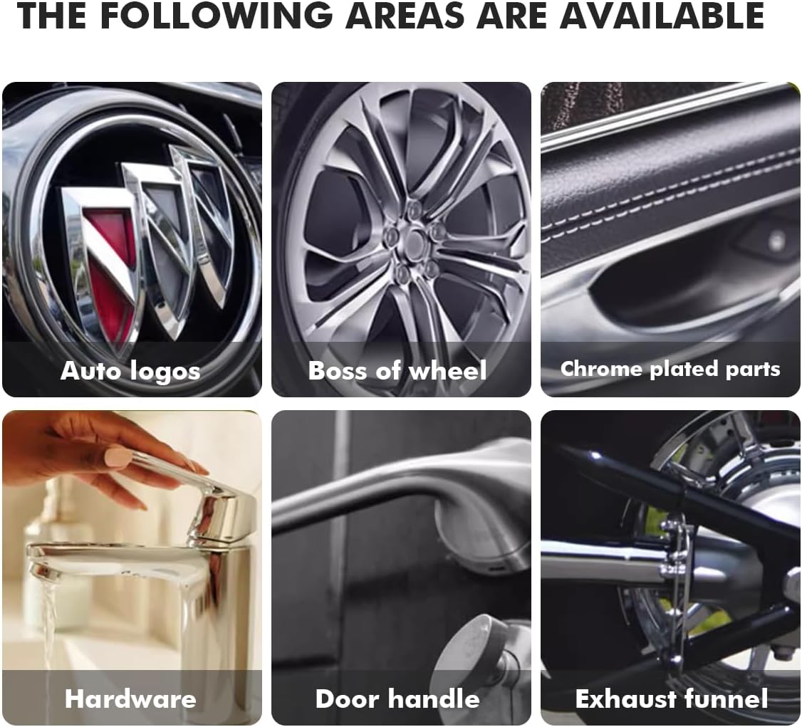 • ADVANCED CLEANING - The Chrome cleaner cuts through grime without precleaning, quick way to clean any hard or decorative chrome finish, including chrome plating, PVD chrome, and even today's chromed plastics, easy to removes fingerprints, smudges, dust and even light water spots, Effectively eliminates stains, oxidation, and grime, and add a long-lasting shine. keep your wheels, trim and accessories sparkling, anytime, anywhere.