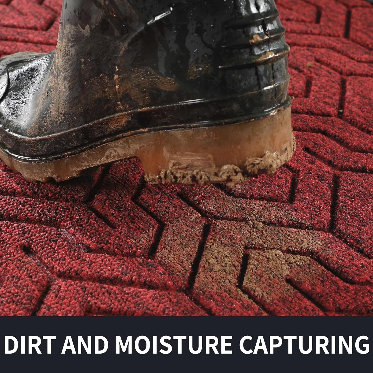 • Superior Dust Trapping & Waterproof: Featured deep Y-pattern grooves, the front door mat effectively scrapes off mud, dust and debris from shoe soles, keeping dirt outside your home. Made of high-quality polypropylene, this mat is waterproof and holds up perfectly even after rain. Its strong structure withstands heavy foot traffic without losing shape or functionality