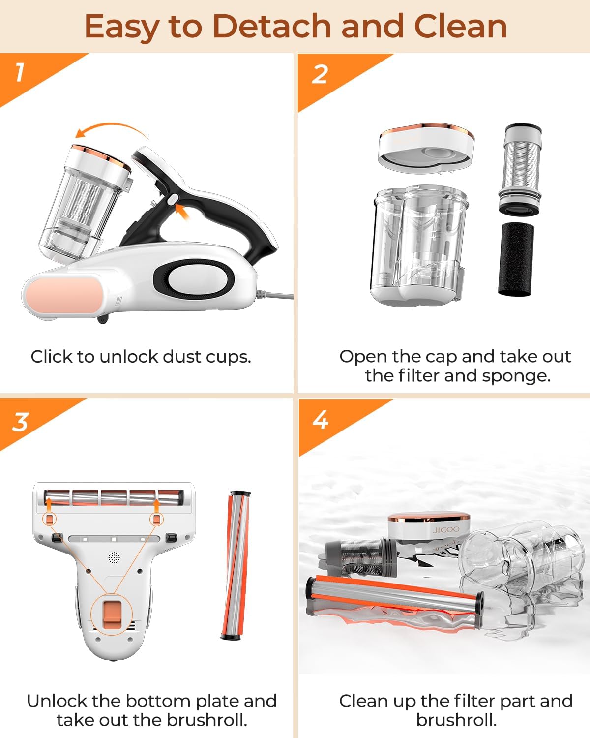 • 99% Protection: Equipped with UV lights and ultrasonic technology, JIGOO J300 mattress vacuum uses 245nm ultraviolet rays and ultrasonic waves to eliminate various, ensuring the health of your family.
