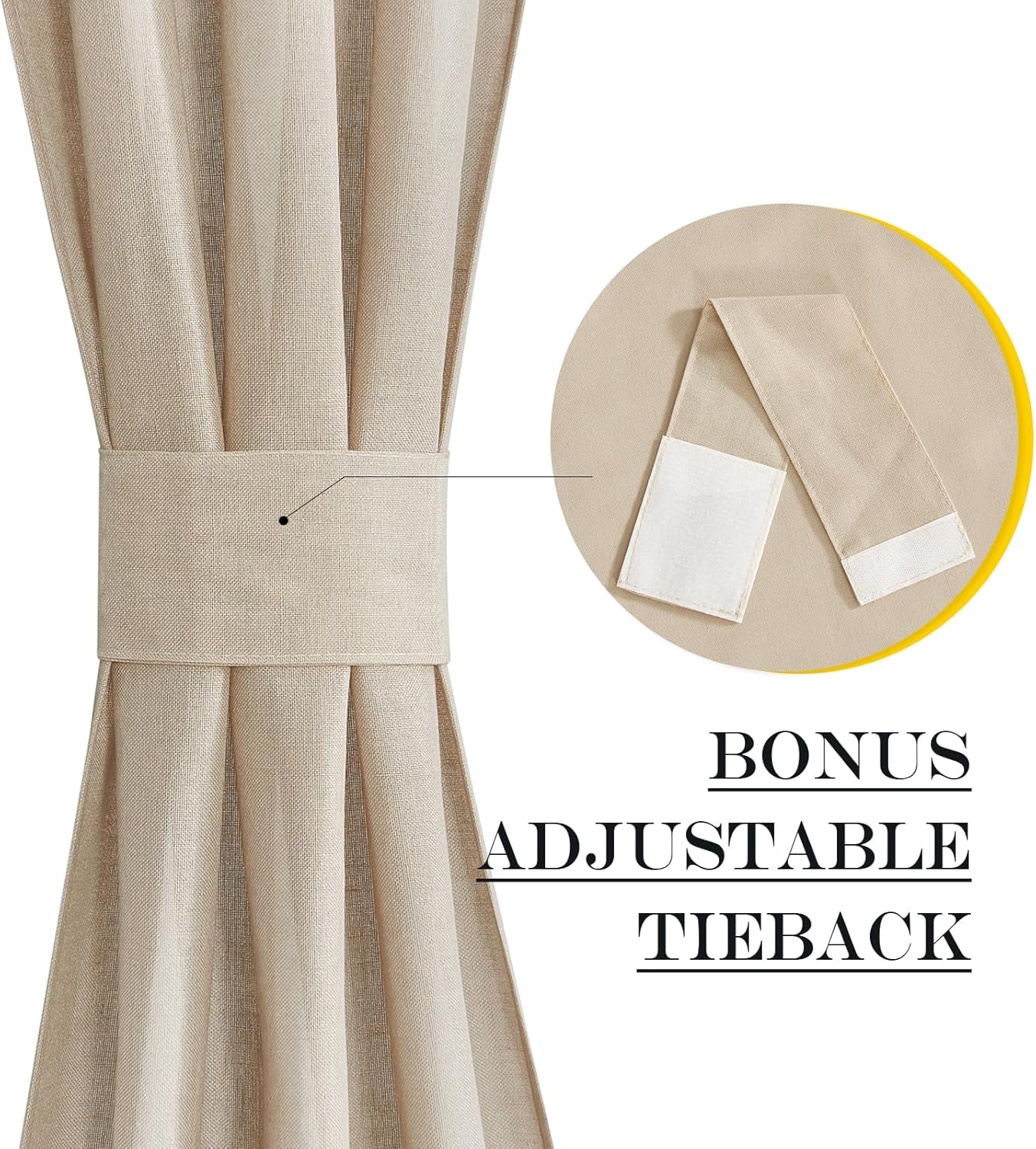 • Simple to Hang: The dual rod pockets at the top and bottom make it easy to install, 1.2” rod diameter allows the curtain a nice fit. Adjustable tie-back can control how much the light you hope to go through into your room.