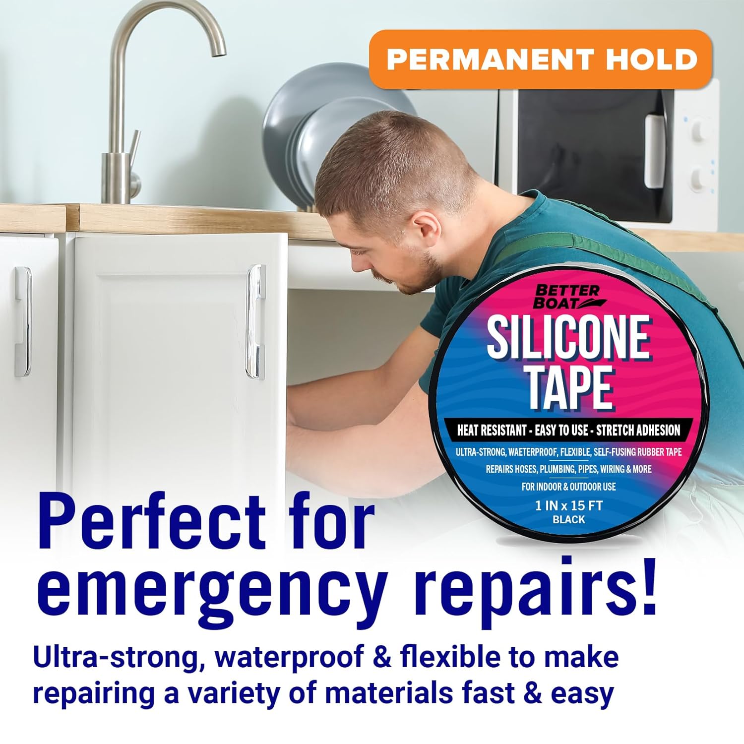 • PERFECT FOR RESCUE REPAIRS: Our premium grade silicone tape for plumbing, electrical and more is 1in x 15ft and black. 100% silicone making it ideal as rubber electrical tape, hose repair tape or wrapping rope ends and grip tool handles.