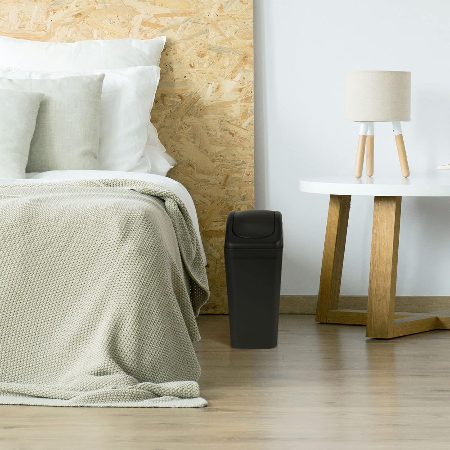 • Thoughtful Swing Lid Design: the 3 gallon trash cans is designed with a swing lid, which not only hides the trash and prevents odors from dispersing, but also keeps the trash bag in place, making your kitchen or other spaces more clean and tidy