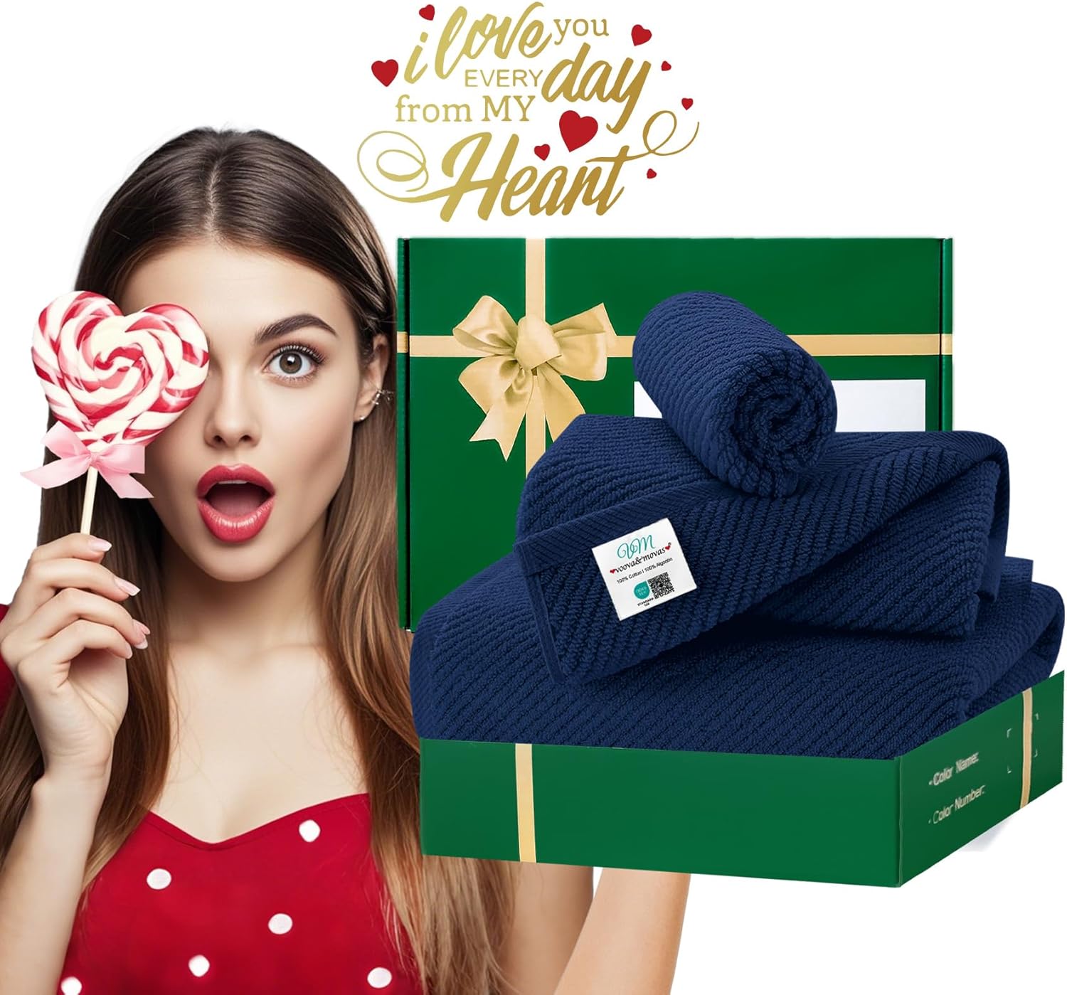 Blue Towels Set for Bathroom, Luxury 3 Piece Gift set, 100% Cotton | Quick Dry | Soft | Thick, 1 Large Bath 30" x 56", 1 Hand 18" x 28", 1 Wash Cloth 13" x 13", Bathroom Essentials, Navy
