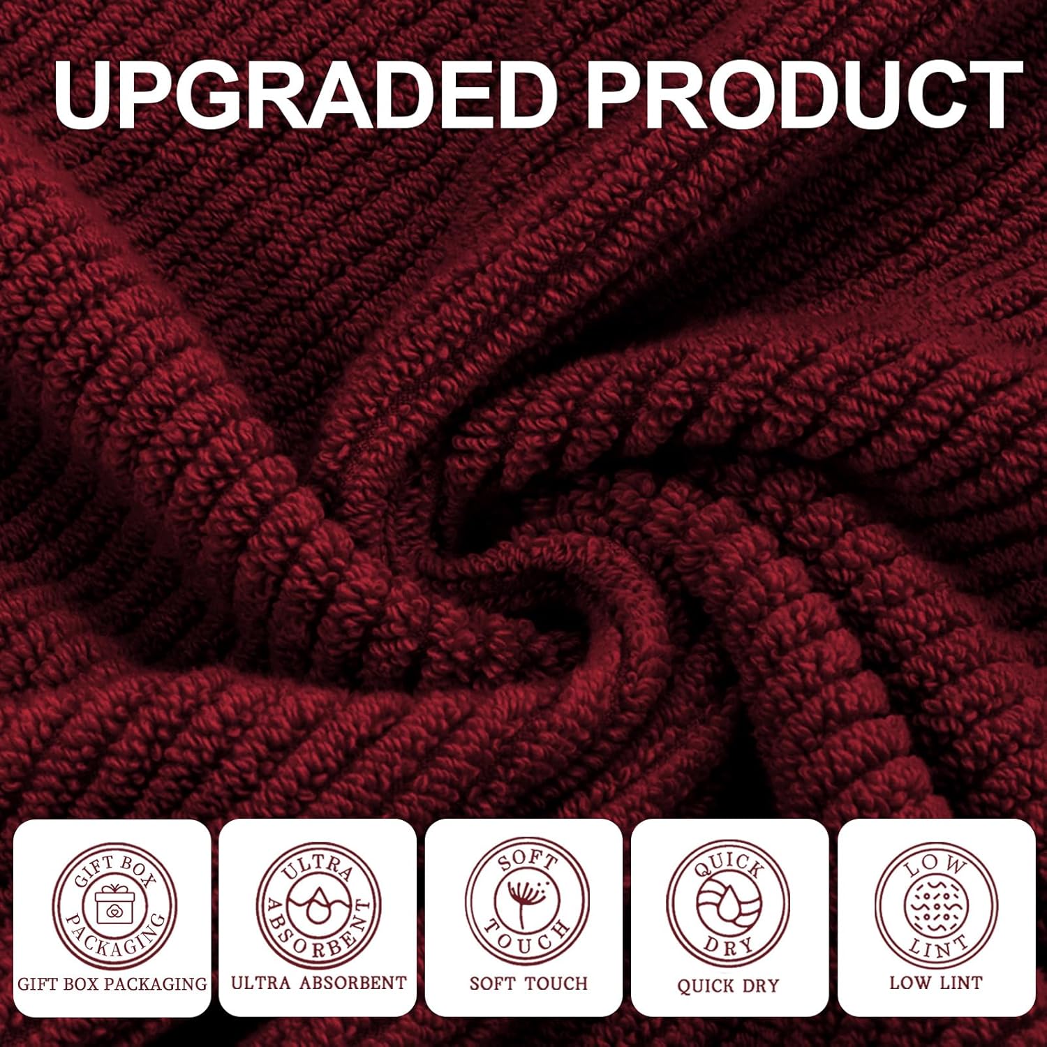 VOOVA & MOVAS 3 Piece Towel Set - 100% Cotton | Quick Dry | Soft | Thick,1 Large Bath 30" x 56", 1 Hand 18" x 28", 1 Wash Cloth 13" x 13", Towels for Bathroom, Bathroom Towels Gift, Burgundy