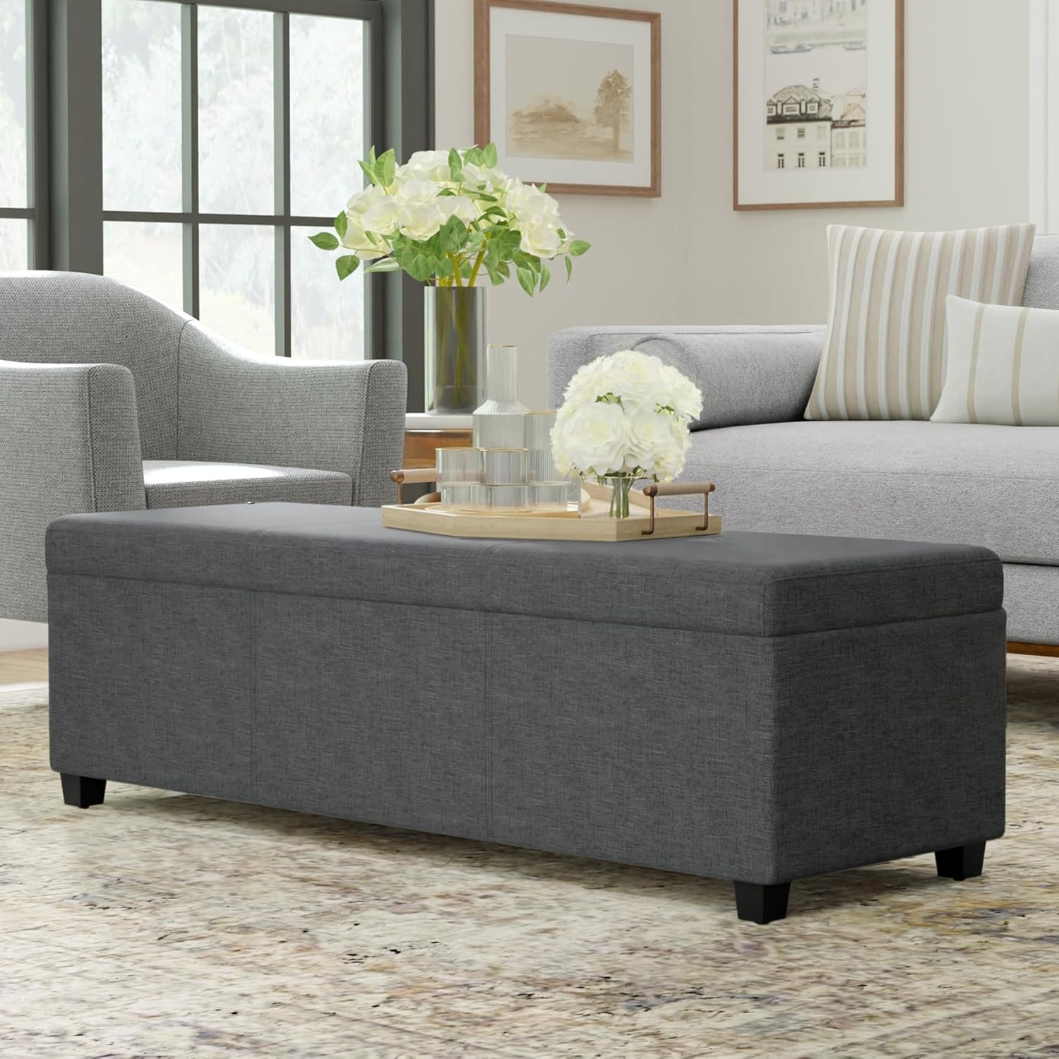 • Multi-functional ottoman can be used in bedroom, living room, family room, hallway as an entryway bench, foot stool, accent furniture or provide additional sitting