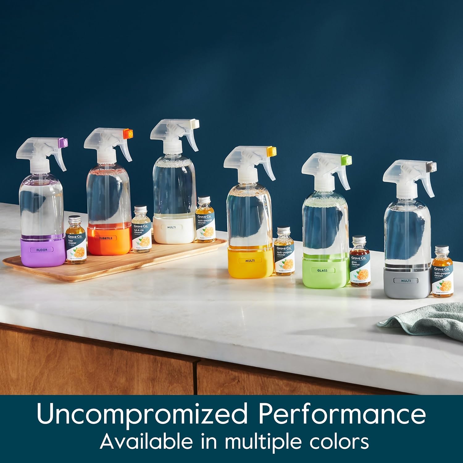 • REUSABLE GLASS SPRAY BOTTLE SET: Customize your cleaning routine with these Grove Co. glass spray bottles with silicone sleeve. The Slide & Snap feature allows you to label the cleaning solution content - floor, glass, multi-surface or tile & tub