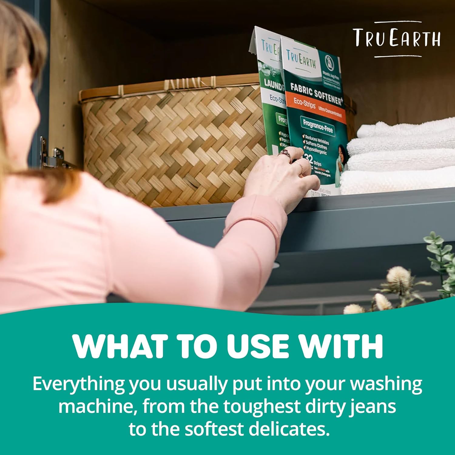 Tru Earth Fabric Softener Strips for Washing Machine, Alternative to Fabric Softener Liquid and Pods, Unscented Fragrance Free, Up to 128 Loads Per 64-Count