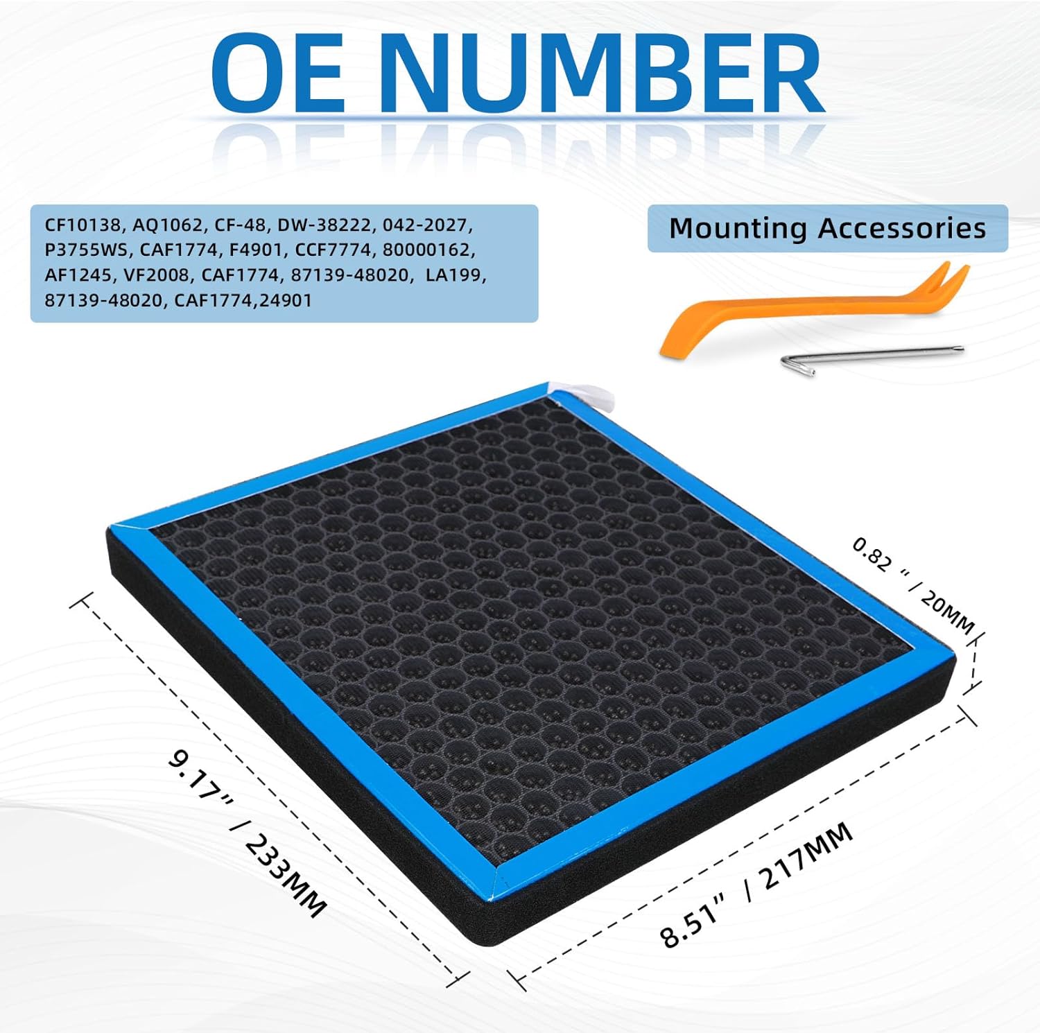 • Replacement Part Number: Replace CF10138, AQ1062, CF-48, 042-2027, P3755WS, CAF1774, CCF7774, 80000162, DW-38222, F4901, AF1245, VF2008, CAF1774, 87139-48020, CAF1774, LA199, 87139-48020, 24901.Before purchasing, please carefully check the brand, model, and year of your vehicle to ensure compatibility.
