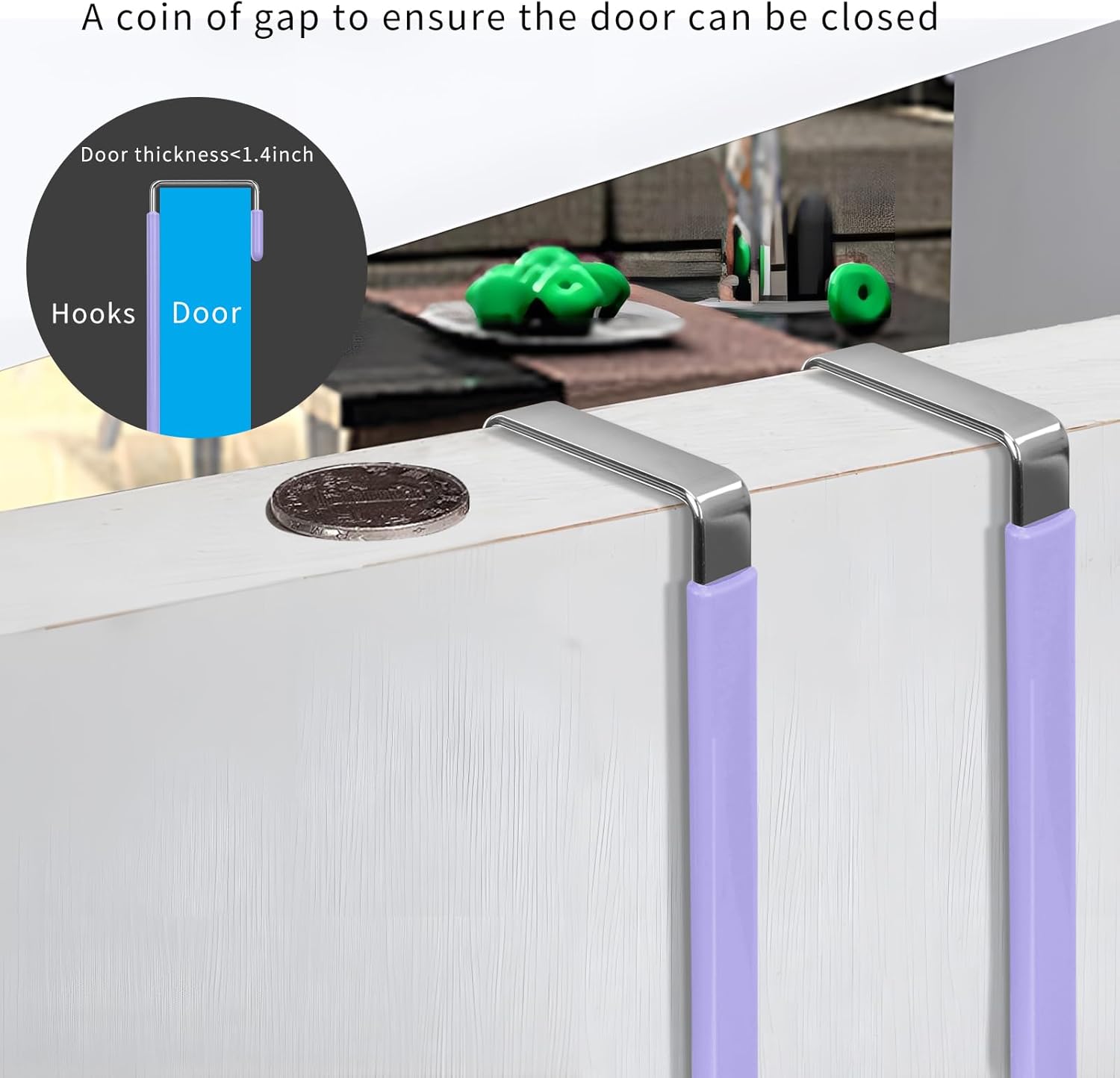 FYY Over The Door Hooks, 4 Pack Door Hangers Hooks with Rubber Prevent Scratches Heavy Duty Organizer Hooks for Living Room, Bathroom, Bedroom Hanging Clothes, Towels, Hats, Coats, Bags Lavender
