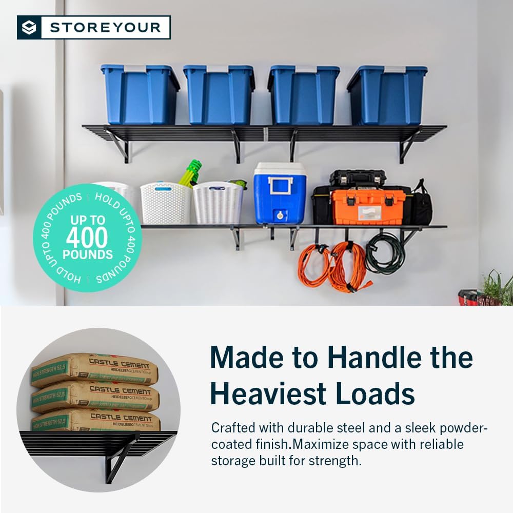 StoreYourBoard 2-Pack Heavy Duty Wall Shelves – Wall-Mounted Garage Storage Shelving and Organization for Sheds, Closets, or Utility Rooms – Holds 200 lbs, 2ft x 4ft, Black