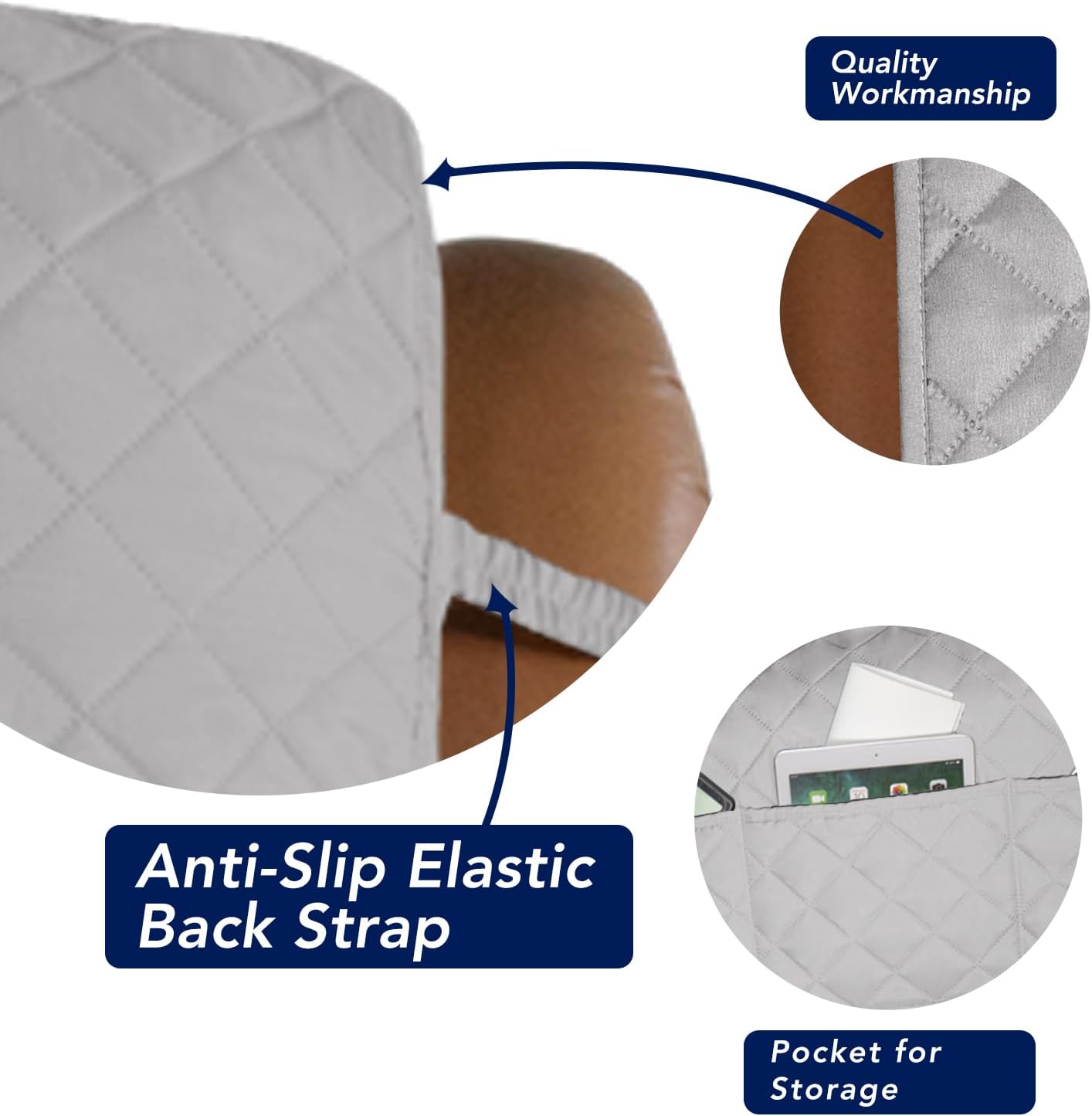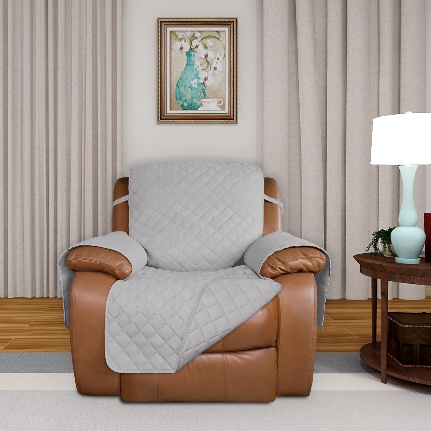 PureFit Reversible Quilted Sofa Cover, Water Resistant Slipcover Furniture Protector, Washable Couch Cover with Non Slip and Elastic Straps for Kids, Dogs (Oversized Recliner, Light Gray/Light Gray)