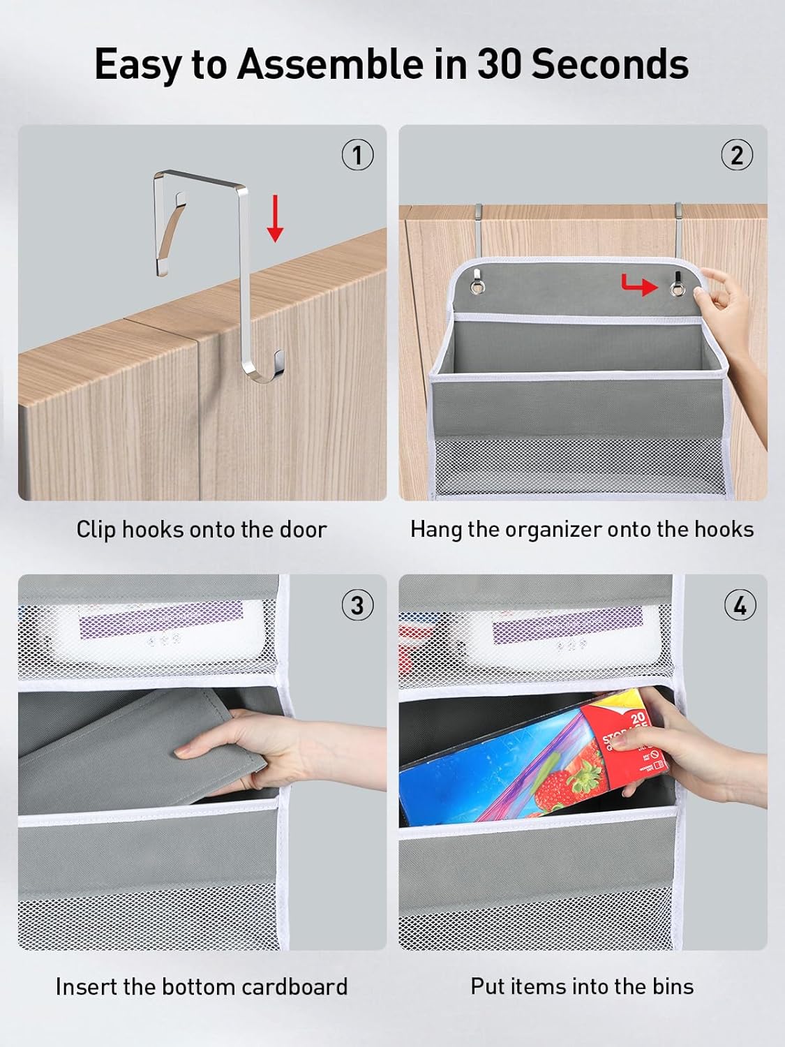 • Tool-free Assembly Within Seconds: No need to insert cardboard in the pockets as required by other bathroom storage shelves! We have it pre-inserted in the pockets to cut your hassle. Simply hang, put the cardboard in the bin's bottom, and done! Definitely a good pickup for anyone on a budget wanting to update organization and storage for extra storage