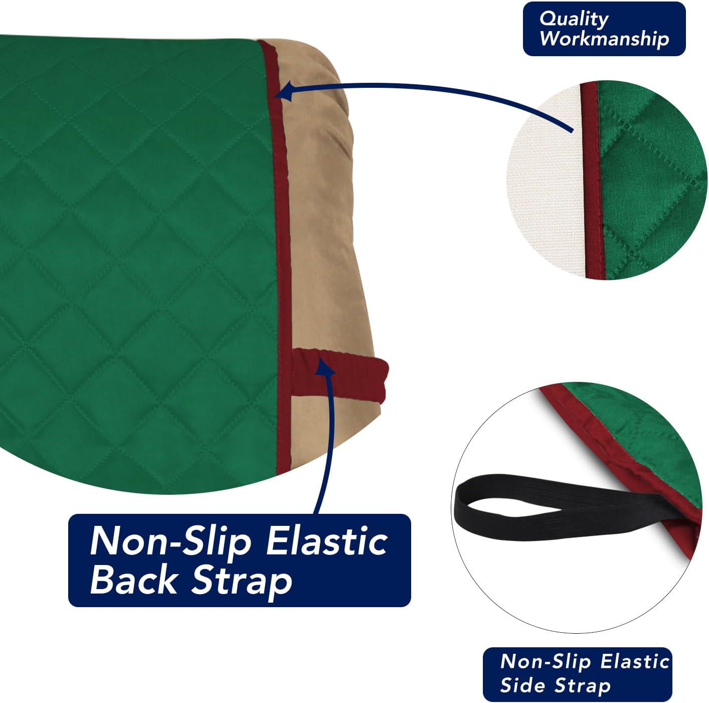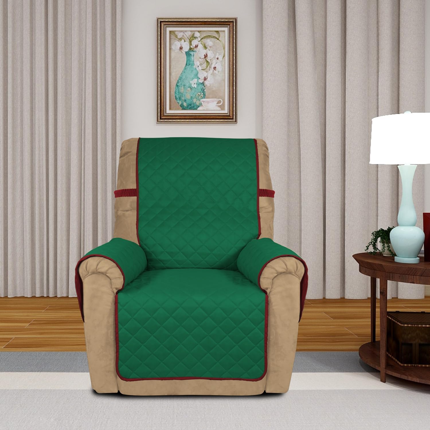 PureFit Reversible Quilted Sofa Cover, Water Resistant Slipcover Furniture Protector, Washable Couch Cover with Non Slip and Elastic Straps for Kids, Dogs, Pets (Small Recliner, Green/Red)