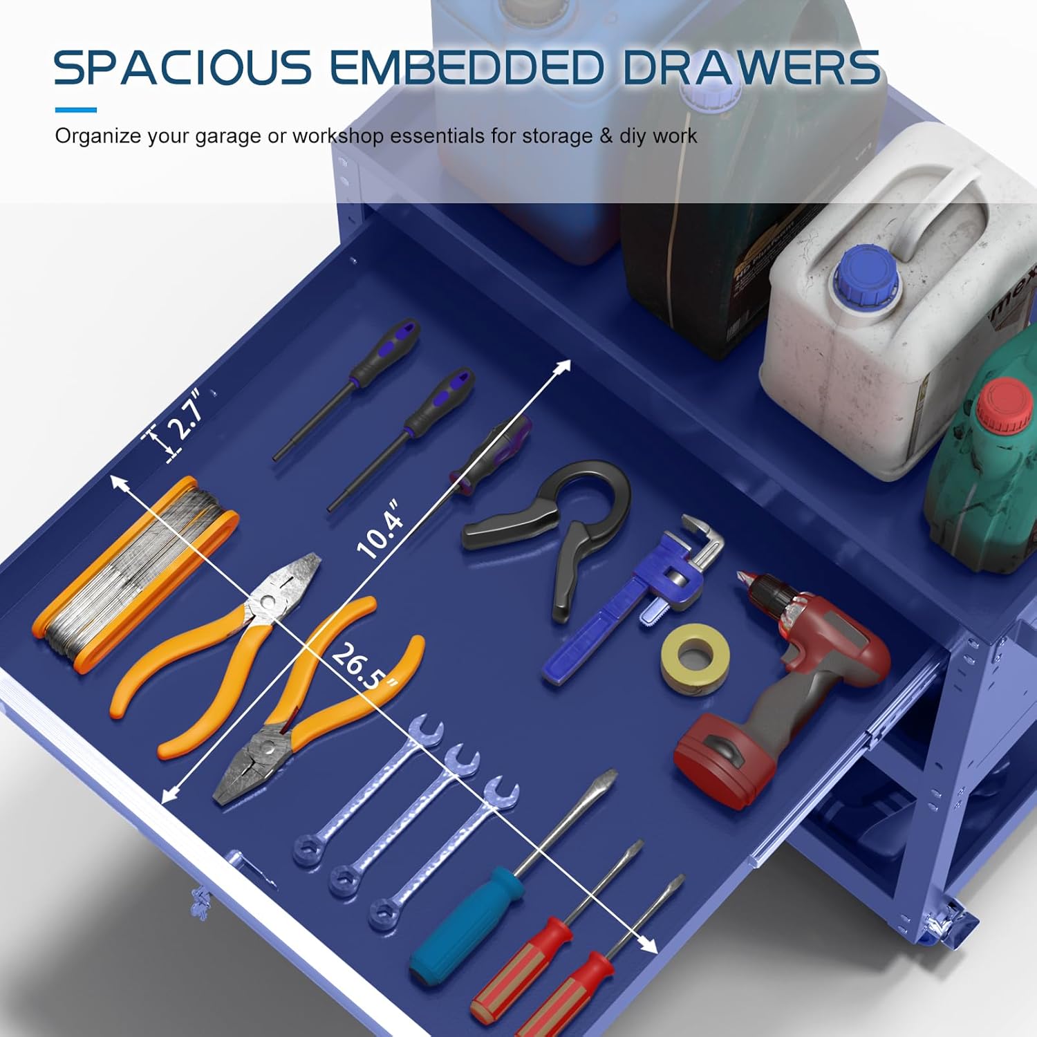 • Secure Storage Drawers: Equipped with a lockable drawer for organizing smaller tools and accessories, Maemttes cart keeps your essentials secure and easily accessible. Smooth sliding rails make drawer operation effortless, while the lock ensures added safety.
