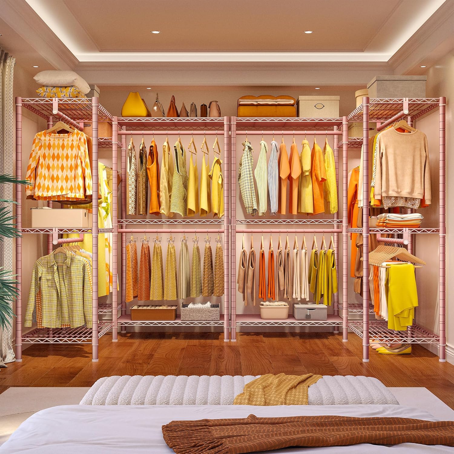 Raybee Clothes Rack,Clothing Racks for Hanging Clothes Heavy Duty,Adjustable Garment Rack with Shelves,Rolling Clothes Rack Max Load 905LBS,75" W x 77" H x 17.8" D Pink