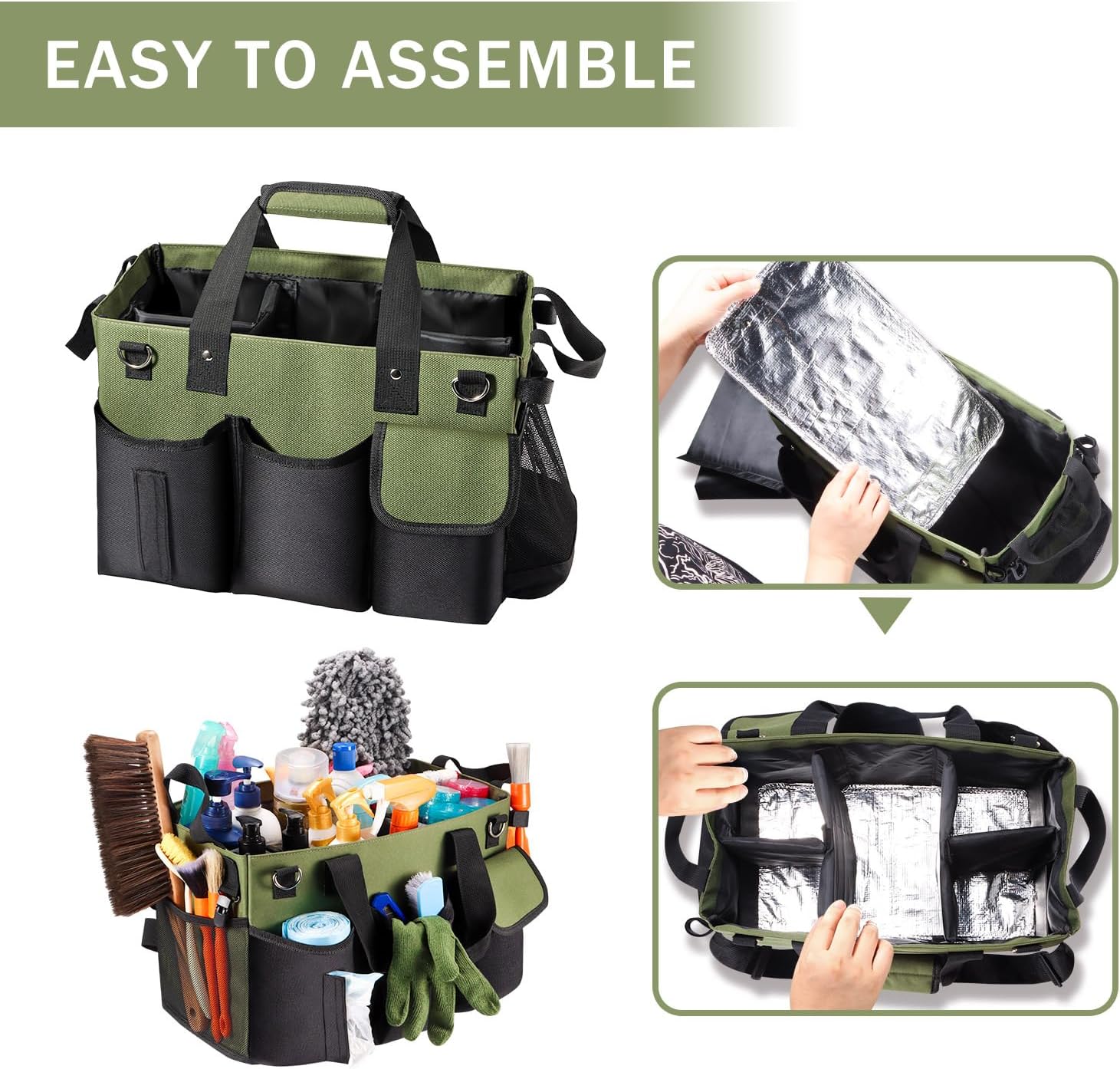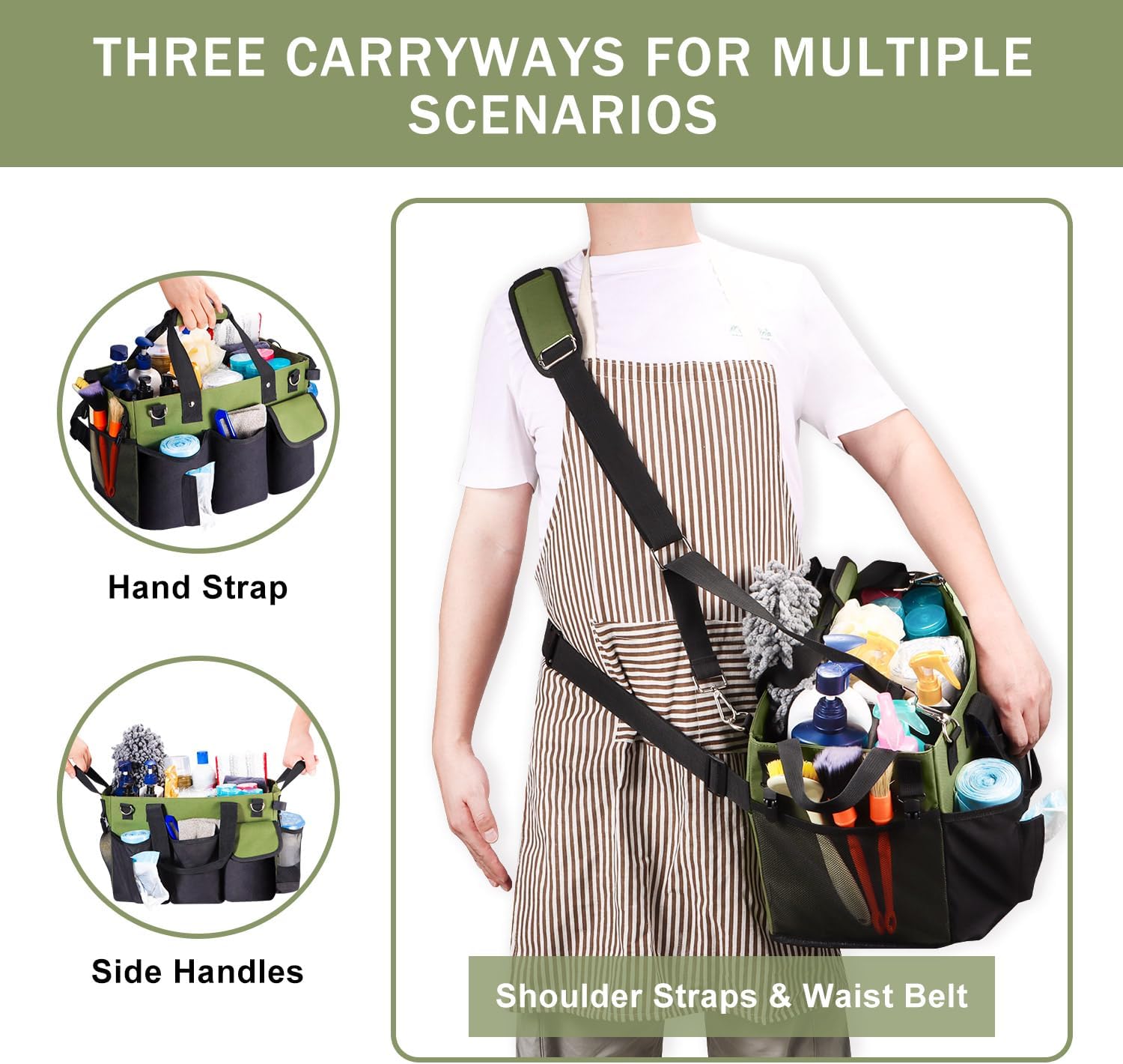 • 【Making Cleaning Work More Efficient and Wide Application】With the large Capacity with Multiple Pockets and the 3 modes of carrying, you can carry all tools at the same time so you have everything you need at arm's reach to make your housekeeping business more convenient! It also can be used as a storage organizer for car washing, garden cleaning, painting, repair equipment, picnic items, trunk storage, and more.