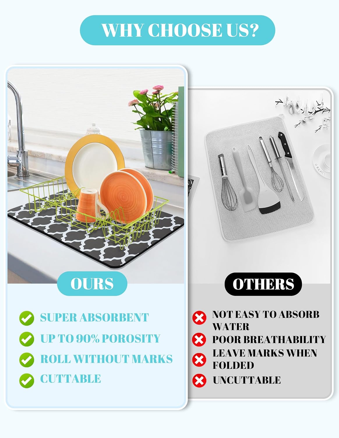 • DISH DRYING MAT: The drying mat is soft and absorbent, Always keep countertops clean and tidy. A practical kitchen mat accessory is definitely worth choosing.