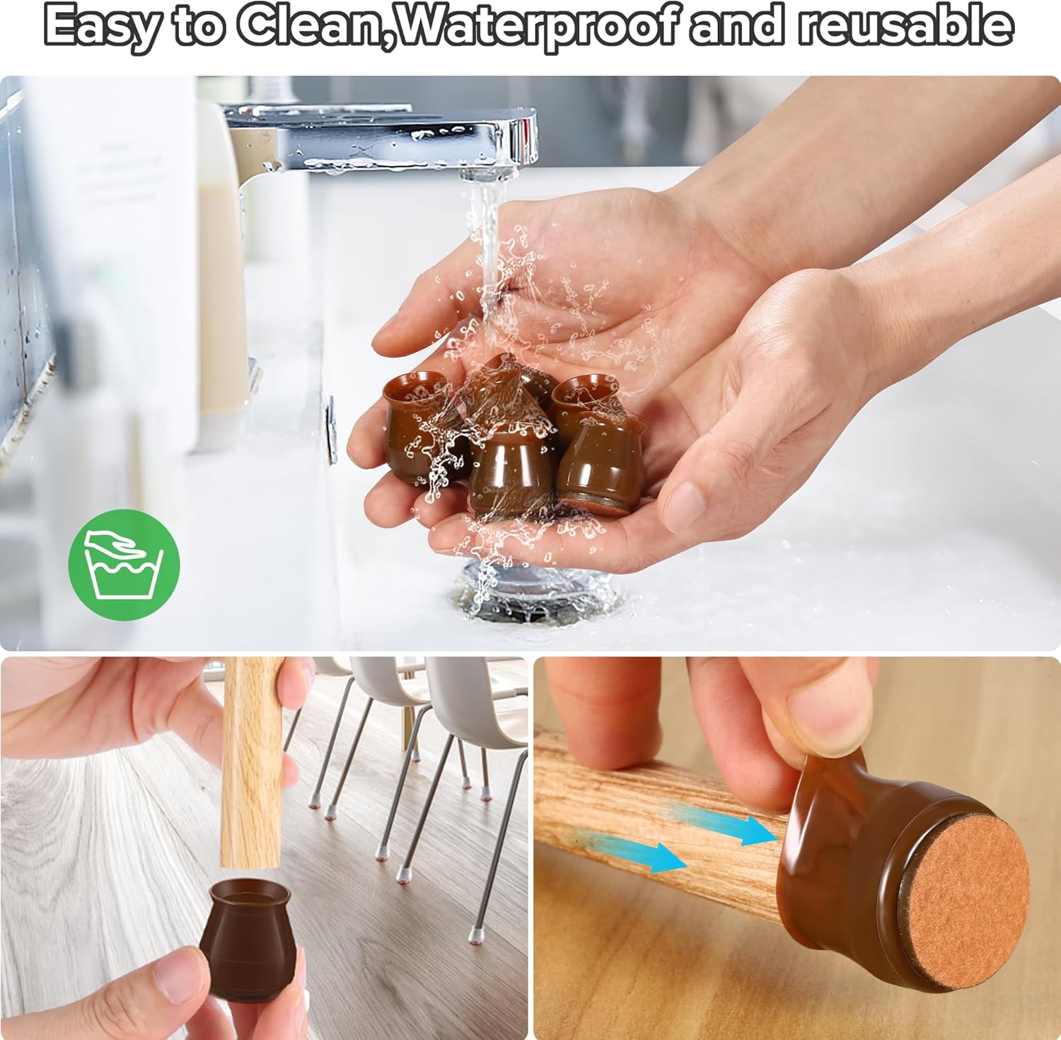 24PCS Upgraded Silicone Chair Leg Floor Protectors for Hardwood Floors, Furniture Sliders for Chair Legs, Felt Bottom Furniture Pads, Anti-Slip Round&Square Cap Covers to Scratch and Reduce Noise