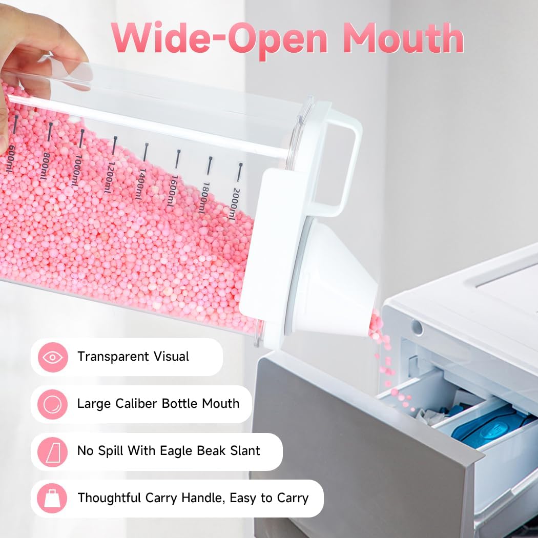 • Multiple use scenarios: The large-diameter bottle mouth laundry detergent dispenser is suitable for laundry detergent, scent booster beads, washing powder,soda powder, grain, cereals, etc