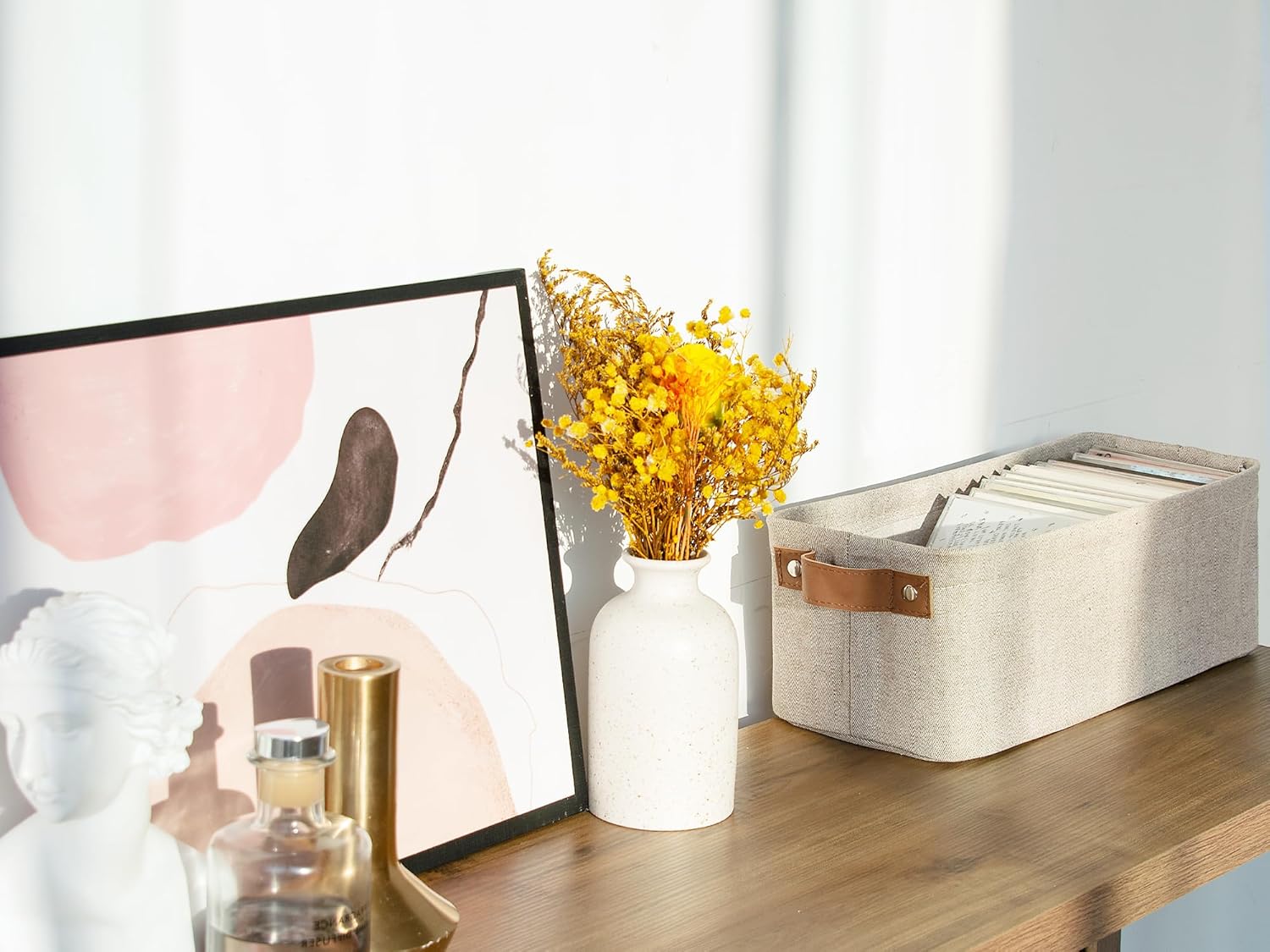 StorageWorks Narrow Storage Bins, Small Basket for Closet and Shelves, Fabric Organizer with Handles, Toilet Paper Storage, Brown and Beige, 2-Pack
