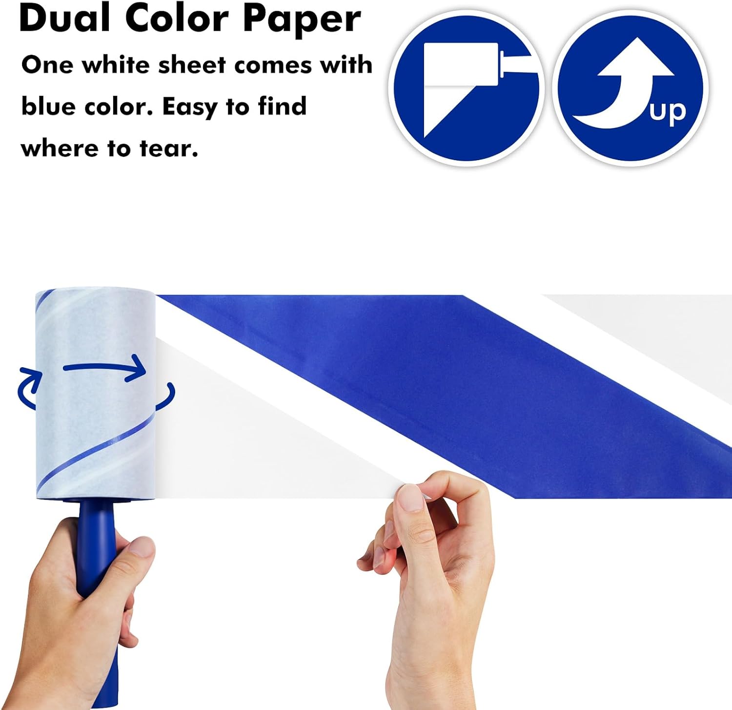 • Easy To Tear: The lint roller papers take new upgraded design, the paper sheet has two color which one layer is white and another is blue. You can easily find where to peel off.