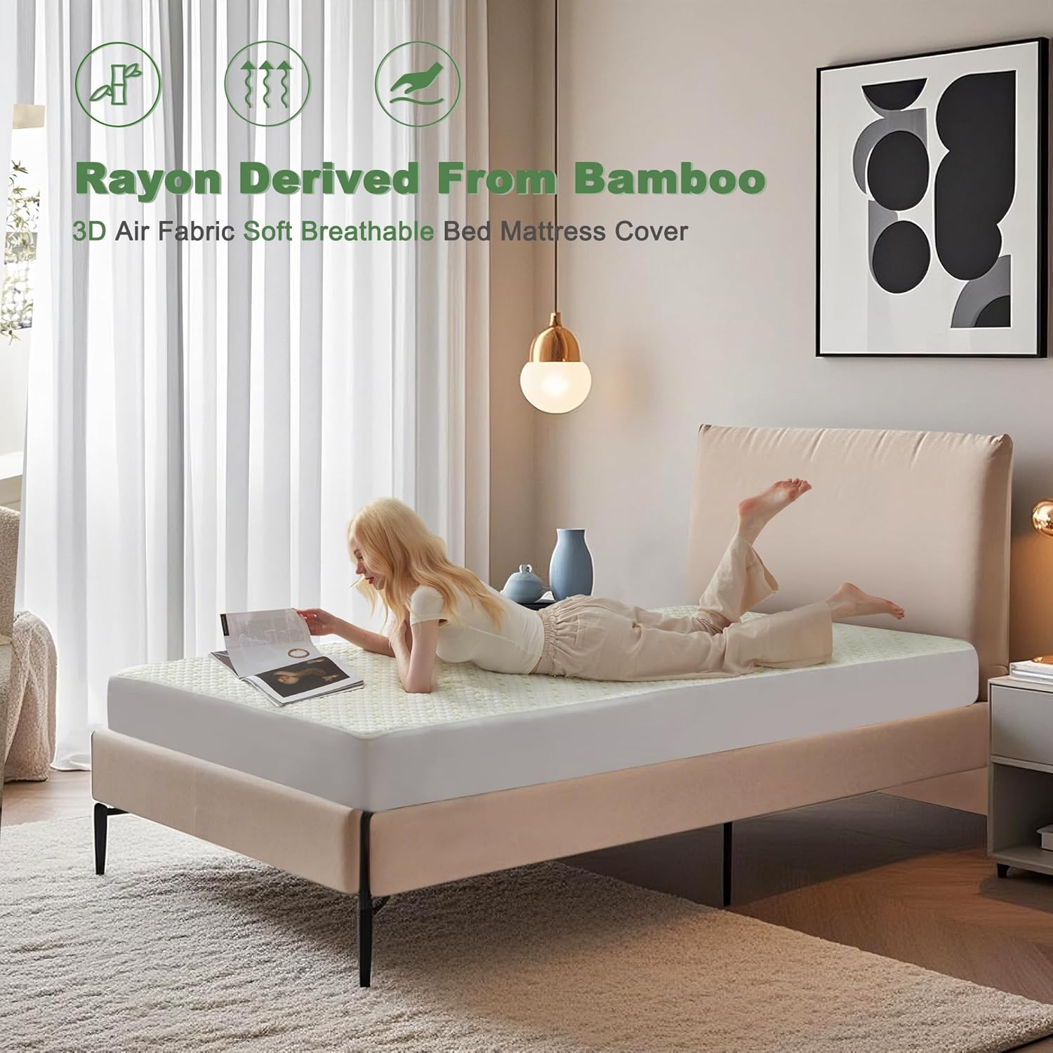 • 3D Air Fabric and Noiseless: Crafted from polyester with a unique channel weave structure, our twin xl mattress protector waterproof promotes airflow and coolness. The waterproof mattress protector twin xl is constructed with soft, comfort materials that can enhance your overall sleep experience and help you relax and unwind after a long day