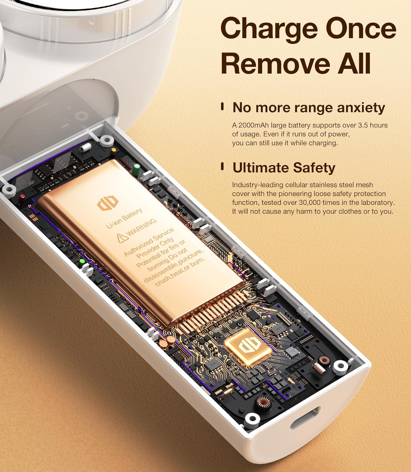 • 【Safely Re-New Your Fabric】DesertWest fabric shaver offers triple security protection. It comes with micro-arc stainless steel mesh protectors that keep clothes from damage. Smart IC chip inside lint remover will automatically power off when sensed that the cover net or the fuzz bin are not attached appropriately during installation/detachment. For charging, defuzzer will stop charging automatically when it is fully charged to prevent overcharing.