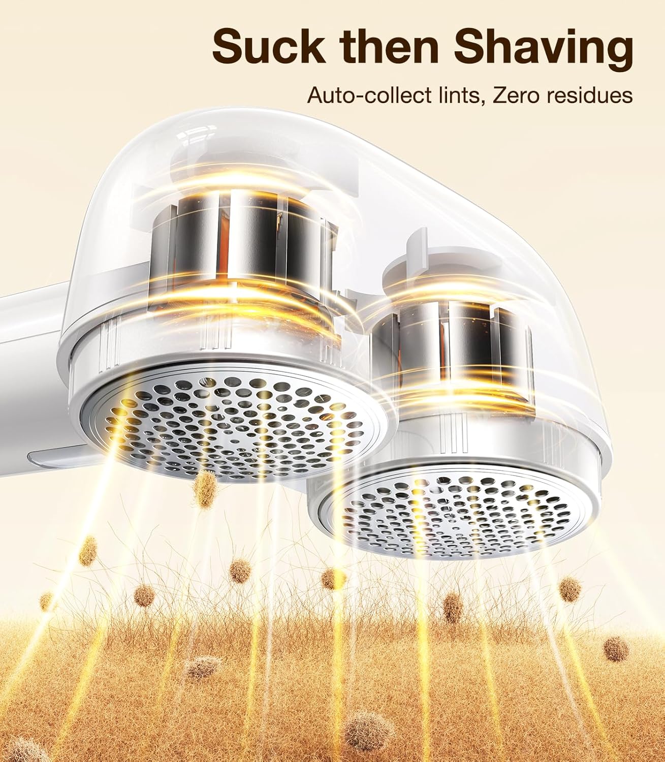• 【2 in 1 Trim and Suction Efficiently】Redefine fabric shaver. This lint remover can trim and suck in pillings at the same time. Offering a powerful suction with a 360 cyclone convection technology, easily sucking up all fuzz trimmed and leaving fabric clean like new. Eliminate the secondary breeding of pillings. Once shaved, the clothes and environment are clean immediately. We can see clearly how many pillings we removed through the visible lint collector bin.