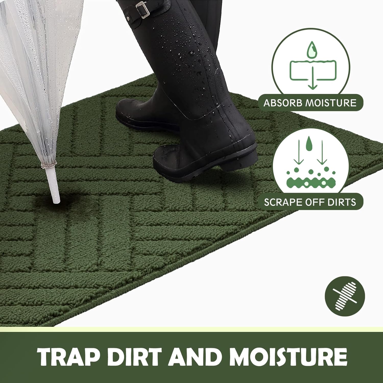 Door Mat Indoor Doormat, Entryway Rug Door Mats Non-Slip Rubber Backing, Low-Profile Entrance Rugs, Absorbent Resist Dirt Doormats Washable Floor Door mat,Green 24"x36"