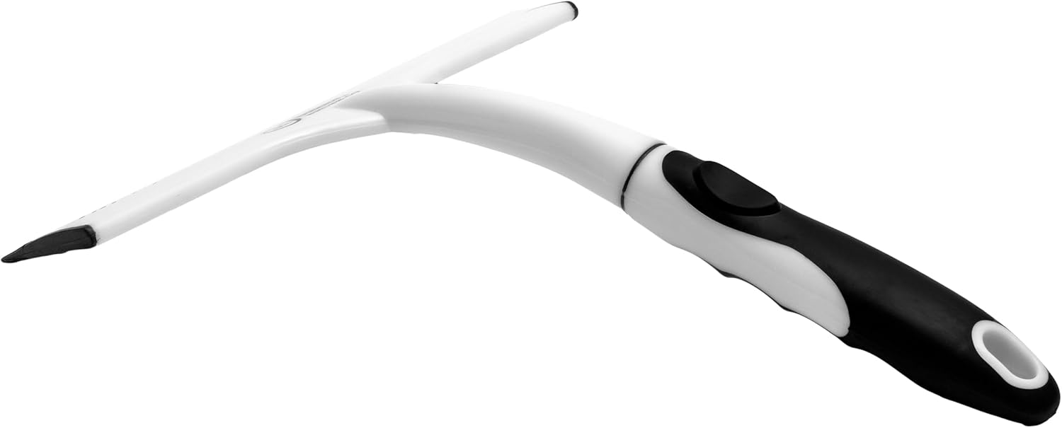 • RUBBERIZED COMFORT GRIP HANDLE: Our Squeegee handle has a thumb and 4 finger grooves for a non-slip easy-to-hold grip. Blade and handle are curved at the optimum angle for ease of use and effective results.