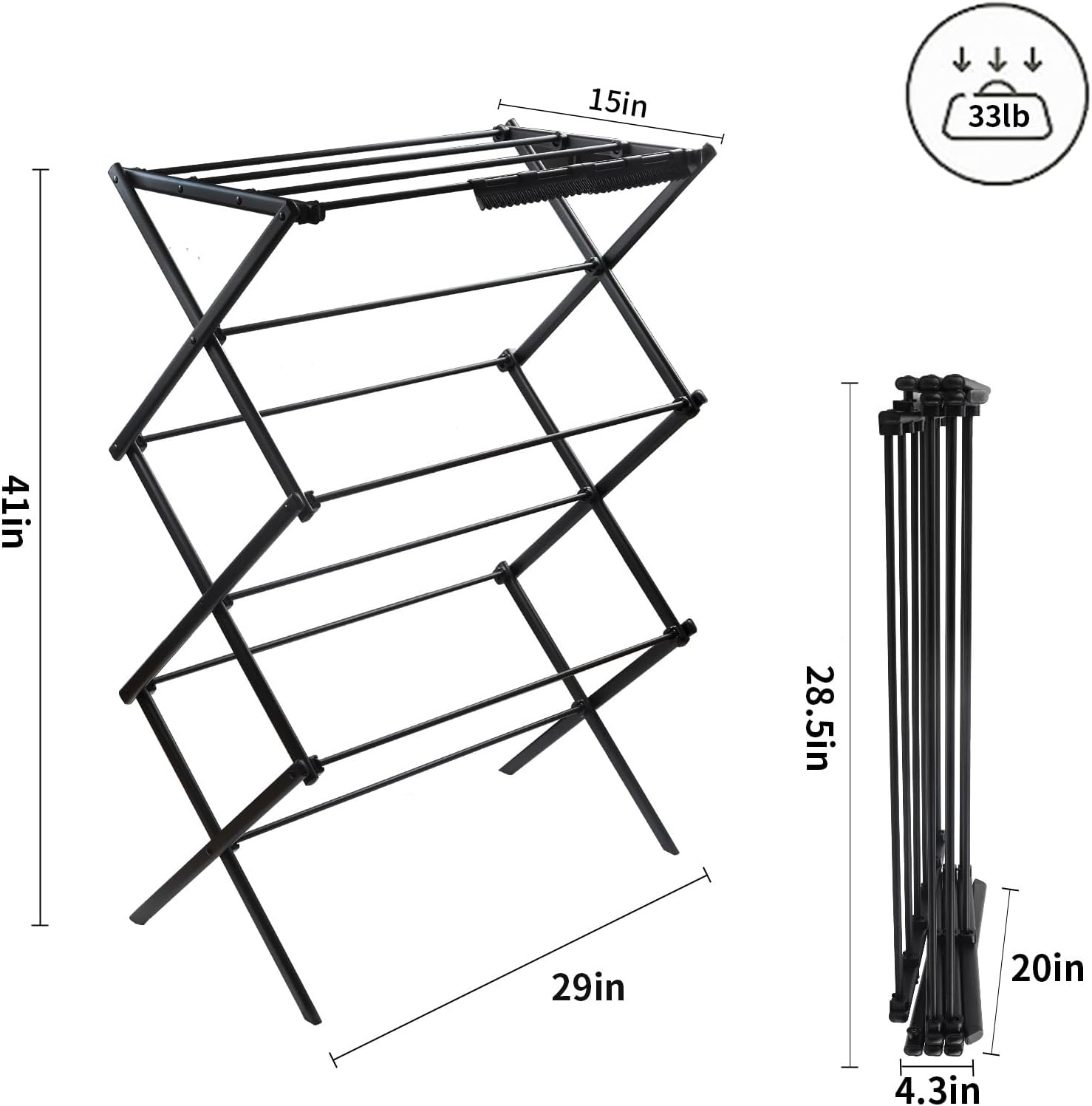 • Ample Drying Space: Wide layers of drying space will provide you with enough space to meet your daily needs. This large folding drying rack easily handles anything from sweats & jeans to beach towels, blankets & bedding