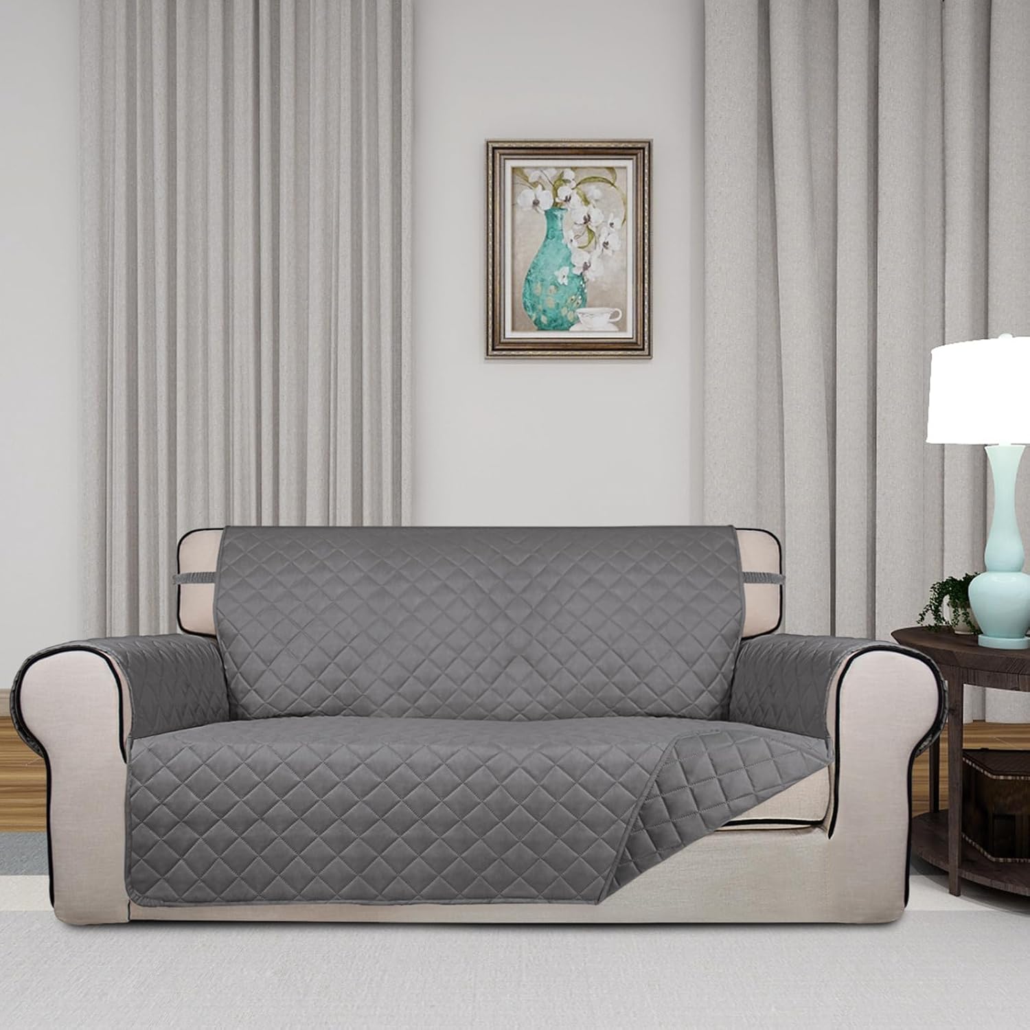 PureFit Reversible Quilted Sofa Cover, Water Resistant Slipcover Furniture Protector, Washable Couch Cover with Non Slip and Elastic Straps for Kids, Dogs, Pets (Oversized Loveseat, Gray/Gray)