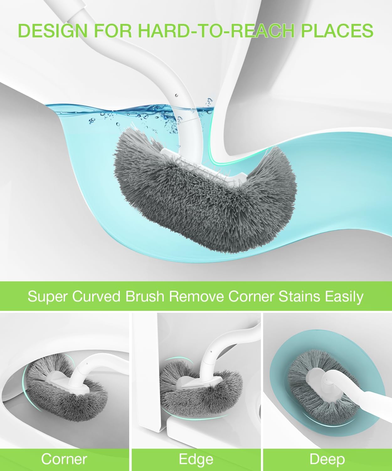• Durable Bristles: Toilet bowl brush and holder with Sturdy-bristled deep clean the toilet, curved design angled can reaches under the toilet rim, inside the pipe.The toilet brush sits in its own holder and easy to store.