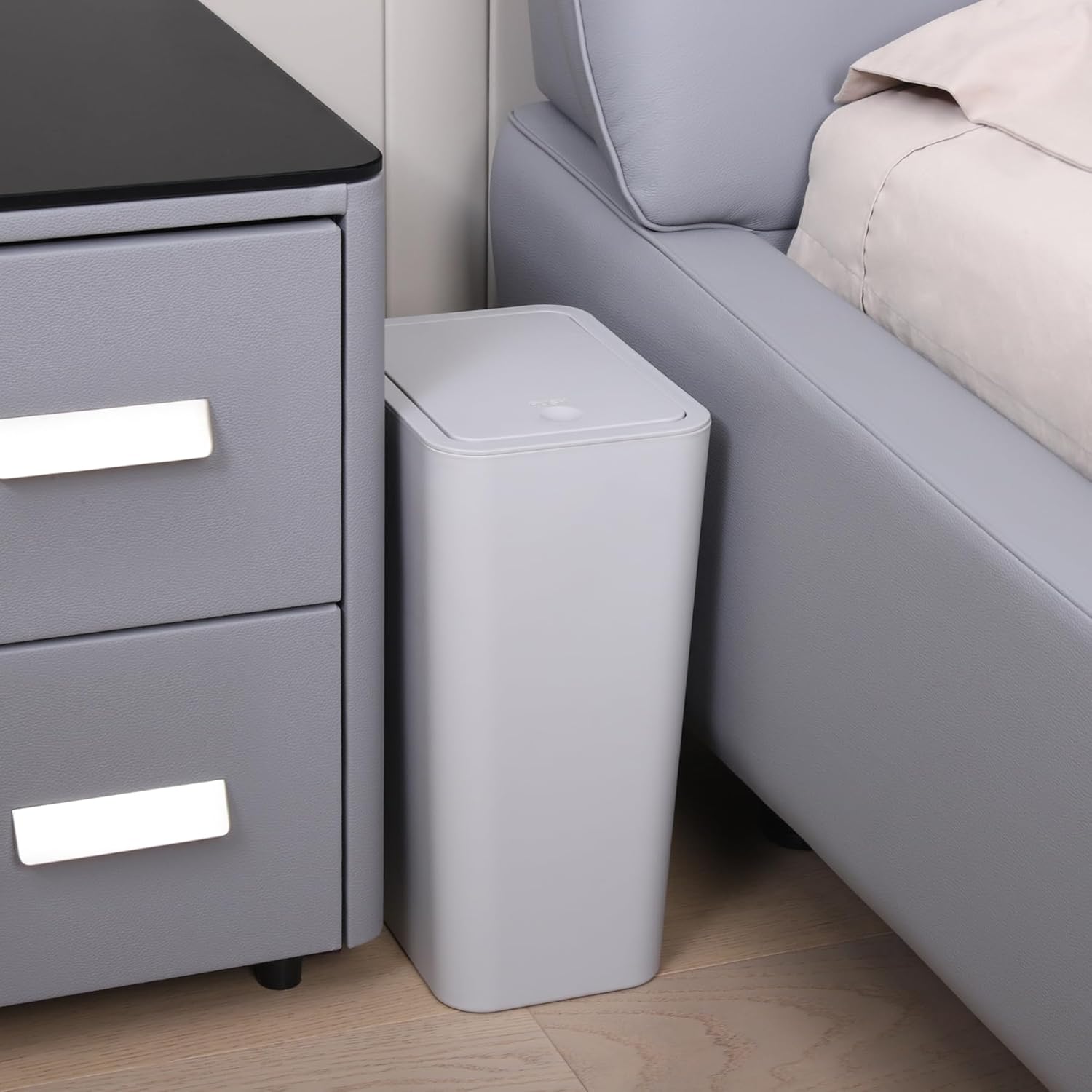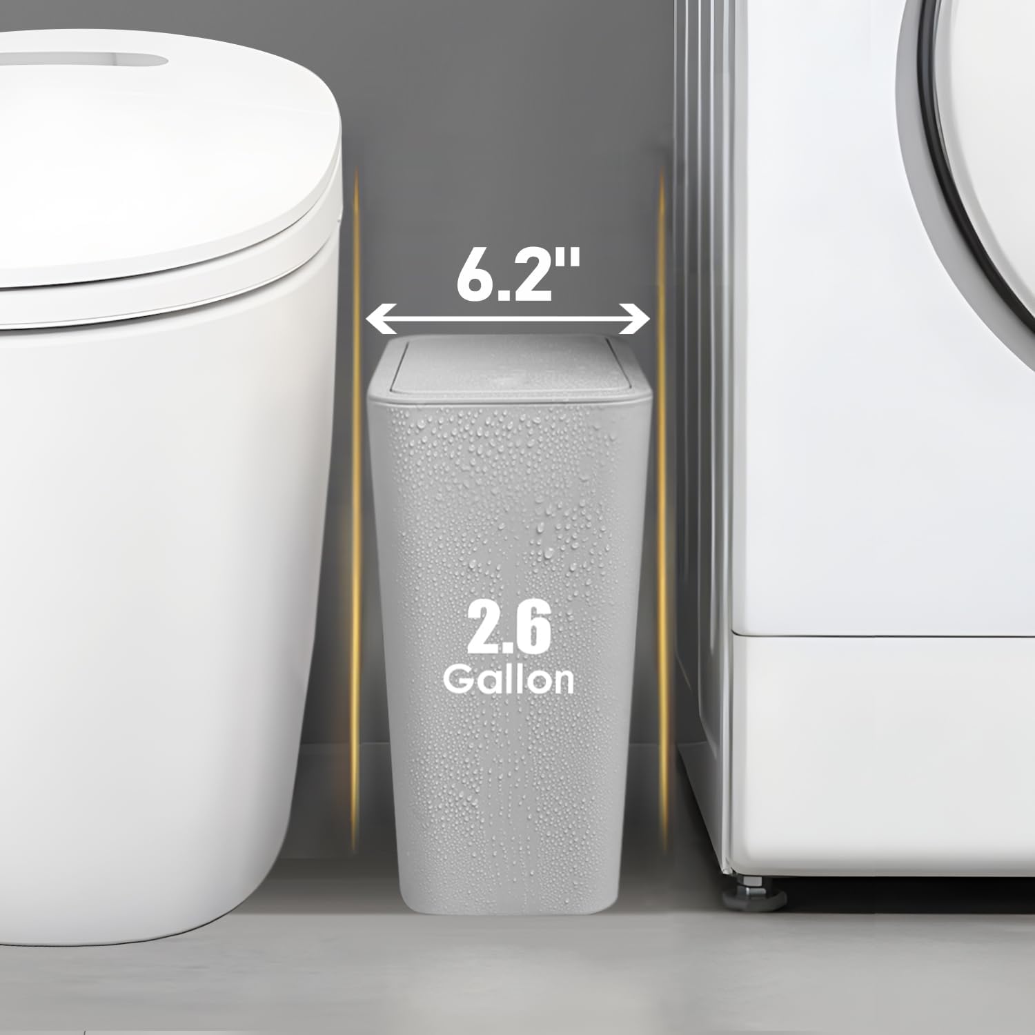 TIPGO Bathroom Trash Can with Lid, 10 Liter/ 2.6 Gallon Slim Garbage Can, Small Trash Bin Waste Basket with Pop-Up Lid for Kitchen, Bedroom, Living Room, Office (2 Pack, Grey)