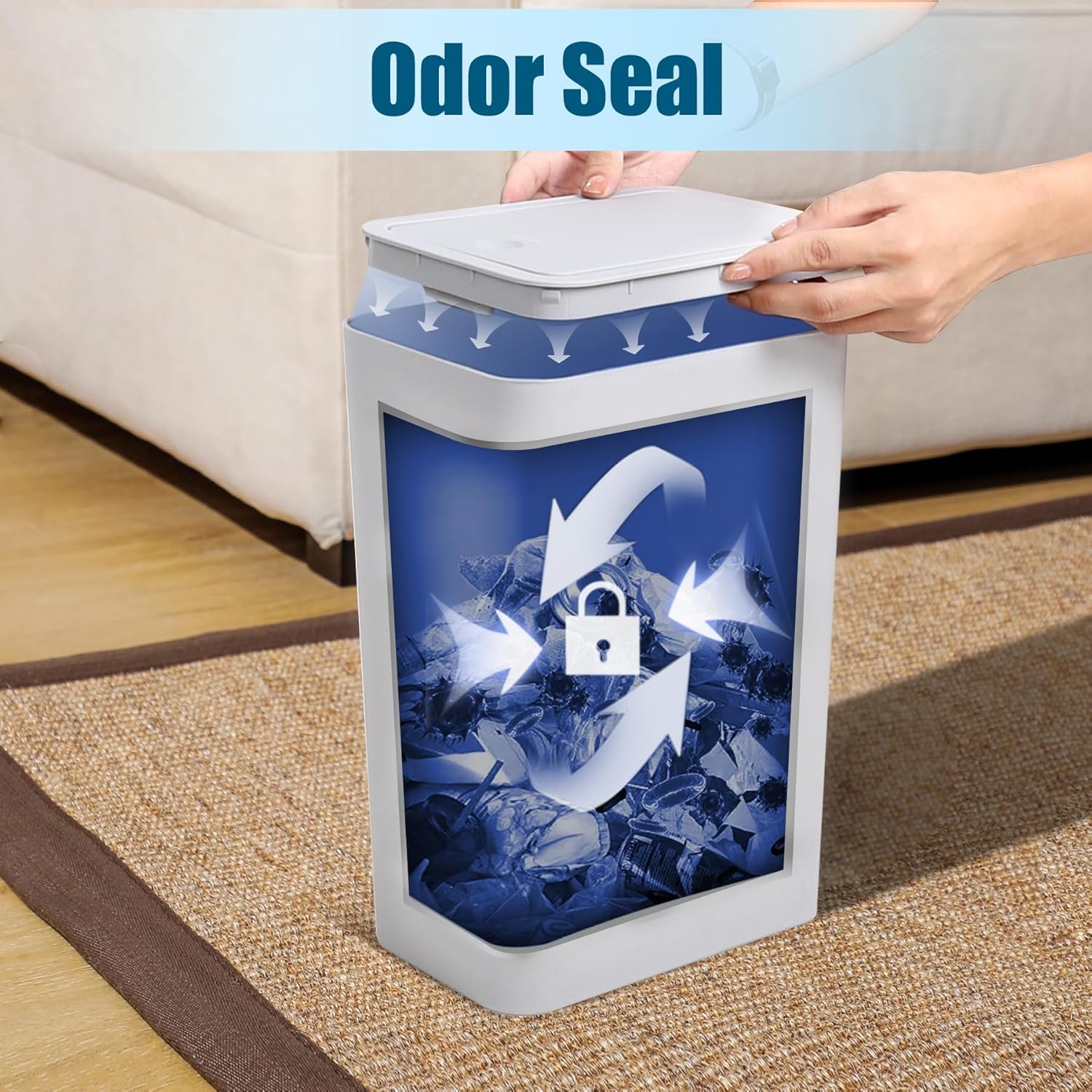 • Keep Smell In: The lid can fit well so there are no odor escapes from the trash can. You can say goodbye to unpleasant smells with our trash can