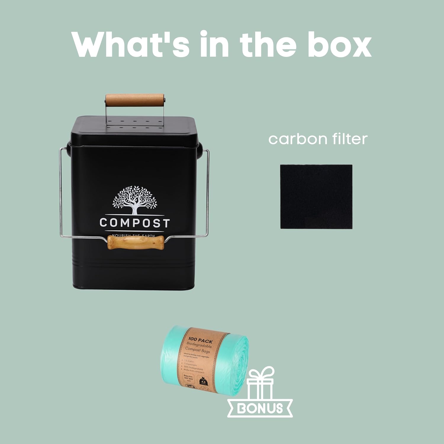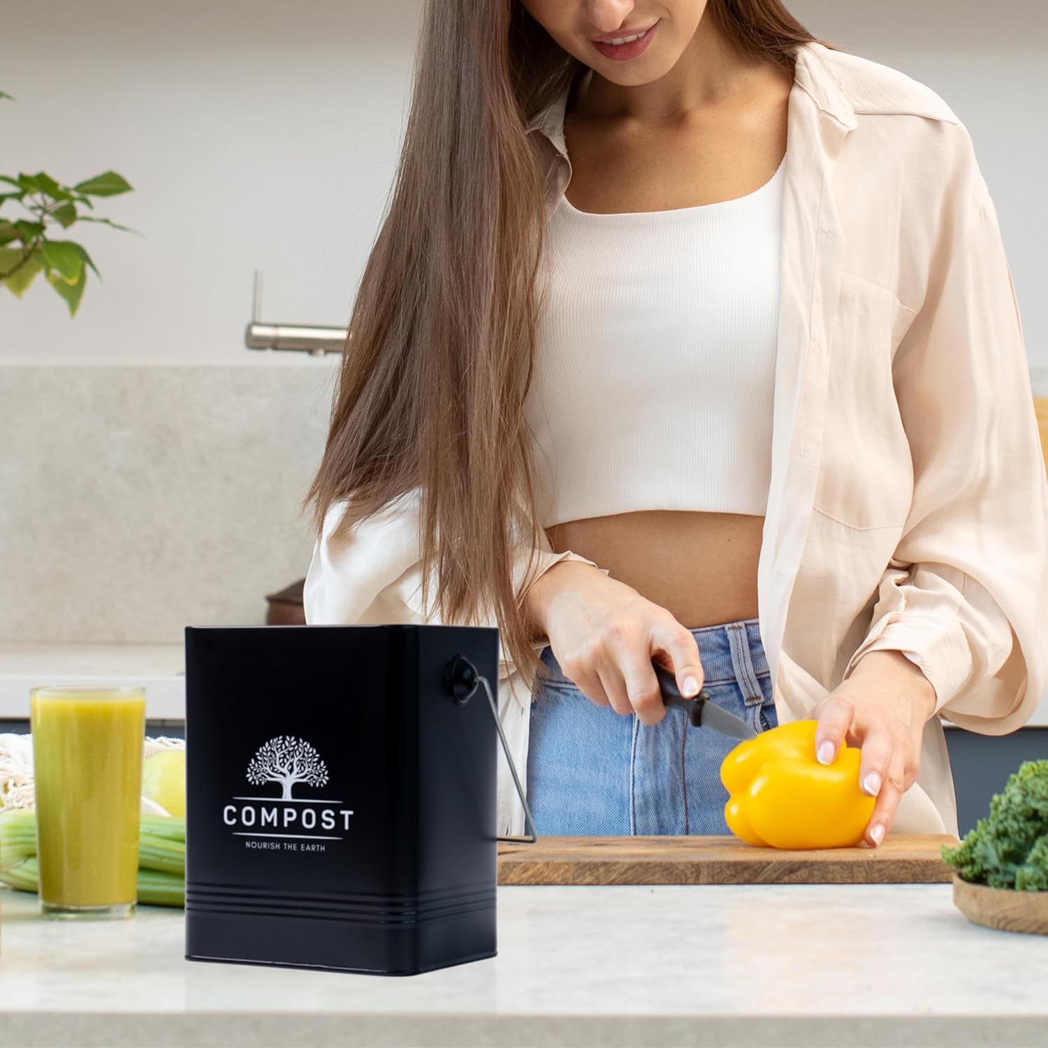 • Our kitchen compost bin considers aesthetics and practicality, and this trash can is a high-quality product that will accompany you in your actions of everyday life. This would also make a wonderful conscious gift. Easily clean with soapy water & soft cloth after use.