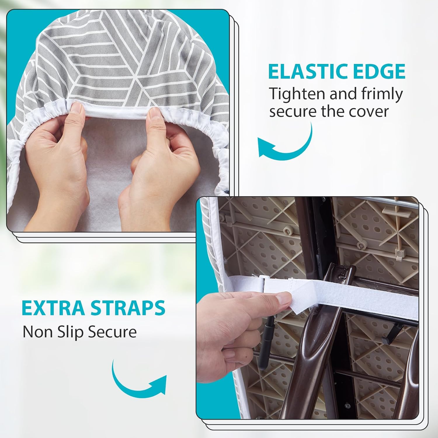 • SECURE ON YOUR IRONING BOARD TIGHTLY: The unique double non slip nose bag simplifies installation and secures it firmly in place. The elastic edge can tighten and straighten the ironing board cover to ensure that it is not easy to move or slide