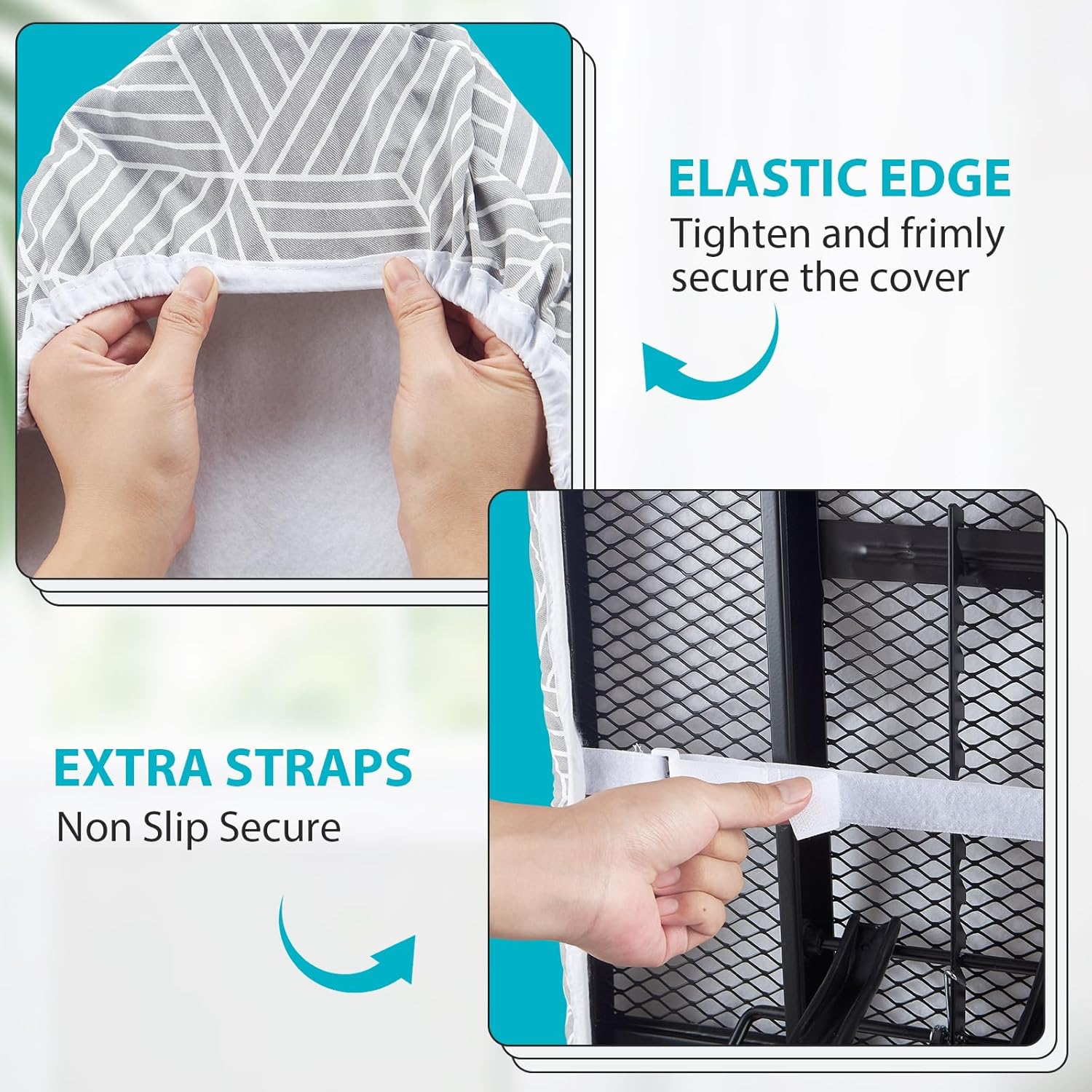 • SECURE ON YOUR IRONING BOARD TIGHTLY: The unique double non slip nose bag simplifies installation and secures it firmly in place. The elastic edge can tighten and straighten the ironing board cover to ensure that it is not easy to move or slide