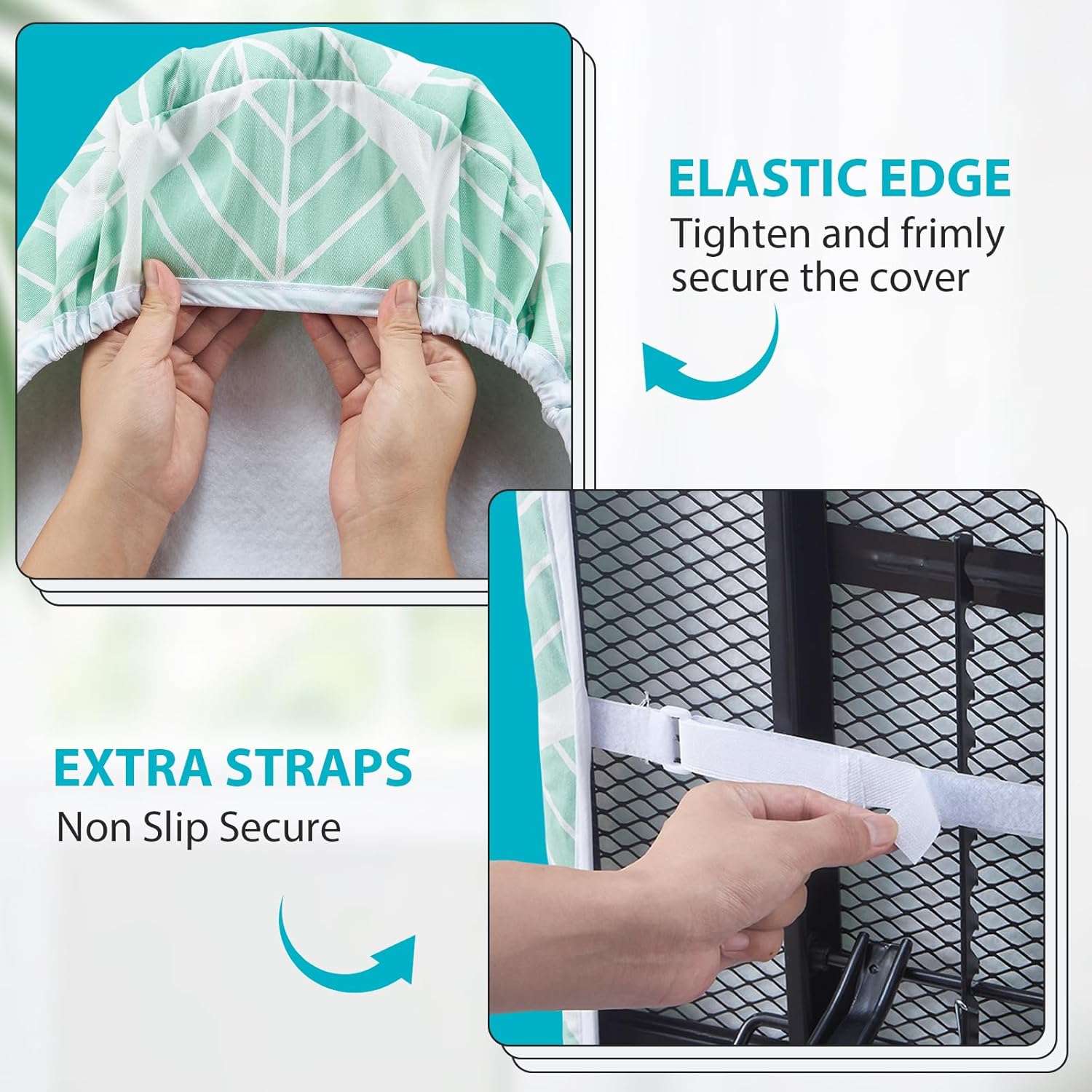 • SECURE ON YOUR IRONING BOARD TIGHTLY: The unique double non slip nose bag simplifies installation and secures it firmly in place. The elastic edge can tighten and straighten the ironing board cover to ensure that it is not easy to move or slide